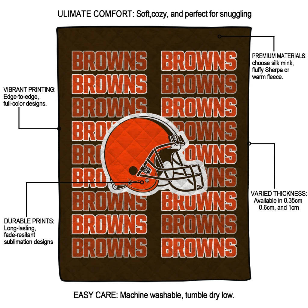 The Cleveland Browns Bold Red Brown Quilt Blanket is more than a blanket—it’s everyday comfort, thoughtfully made. Crafted from premium quilting fabric with a soft microfiber touch, it offers a smooth hand-feel and lasting coziness. Layered quilting with a cotton-filled core provides adaptable warmth across seasons while maintaining a clean, tailored look on your bed or sofa.
