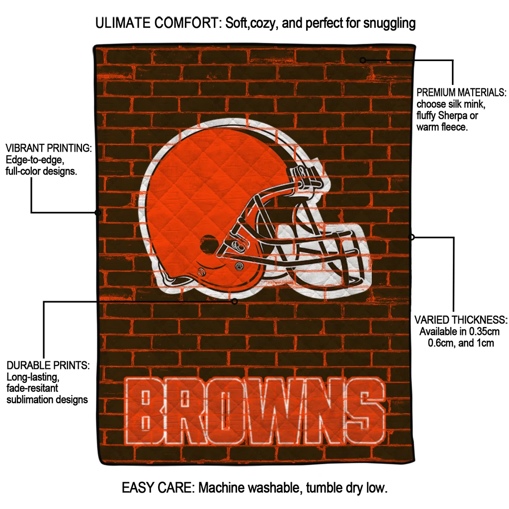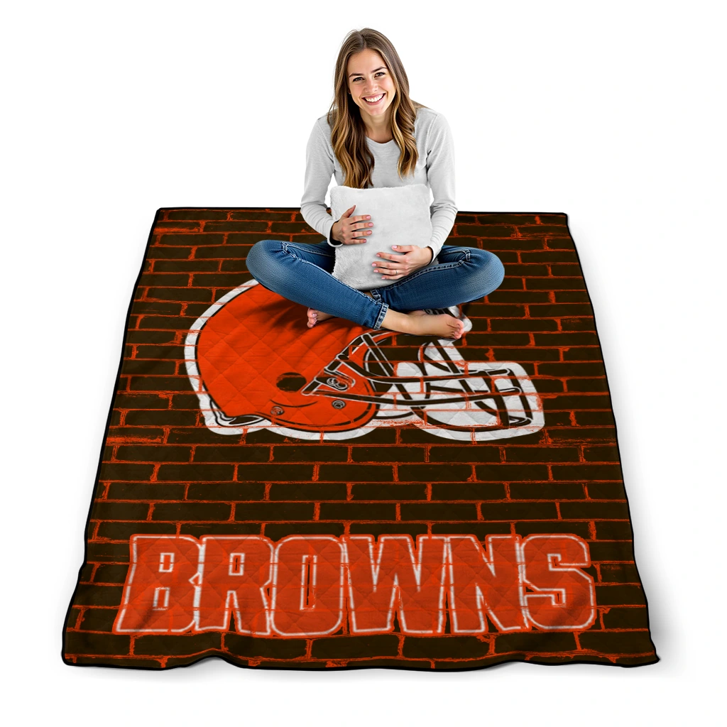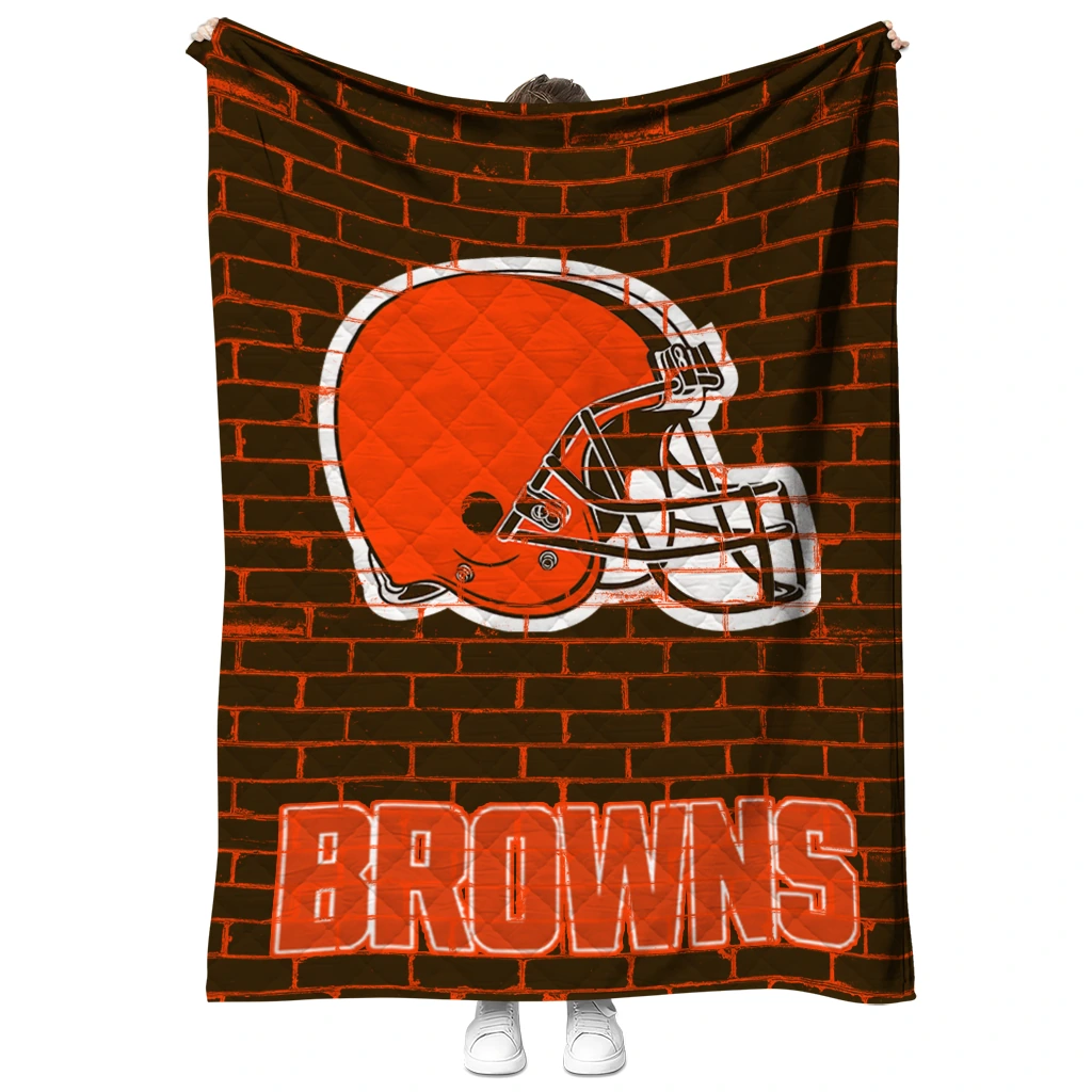 Cleveland Browns Brick Grid Brown Quilt Blanket
