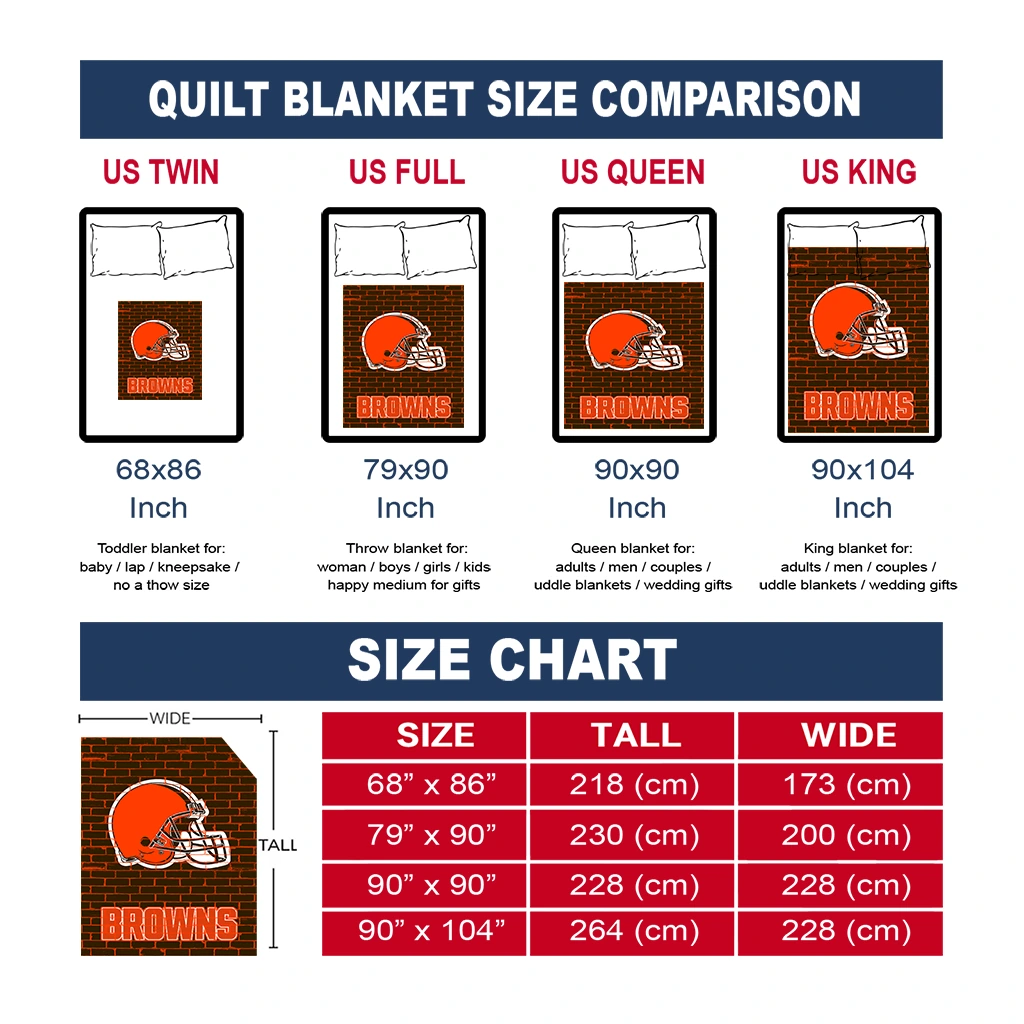 Wrap yourself in warmth and pride with the Cleveland Browns Brick Grid Brown Quilt Blanket from the Cleveland Browns Blankets collection at Yes That Blanket. Made from 100% premium quilting-weight polyester blended with a touch of microfiber, this quilt offers a smooth, soft finish you’ll love. Choose between two quilting styles—Stipple or Diagonal—and enjoy the comfort of a cotton-filled layer inside that adds extra coziness for every season. The border is available in classic black or white, giving your design a clean, timeless edge.