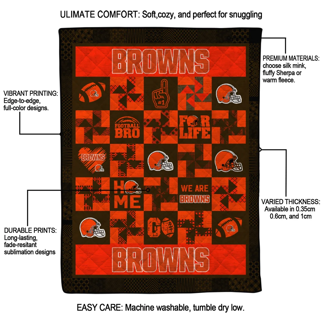 The Cleveland Browns Helmet Heart Brown Quilt Blanket is more than a blanket—it’s everyday comfort, thoughtfully made. Crafted from premium quilting fabric with a soft microfiber touch, it offers a smooth hand-feel and lasting coziness. Layered quilting with a cotton-filled core provides adaptable warmth across seasons while maintaining a clean, tailored look on your bed or sofa.