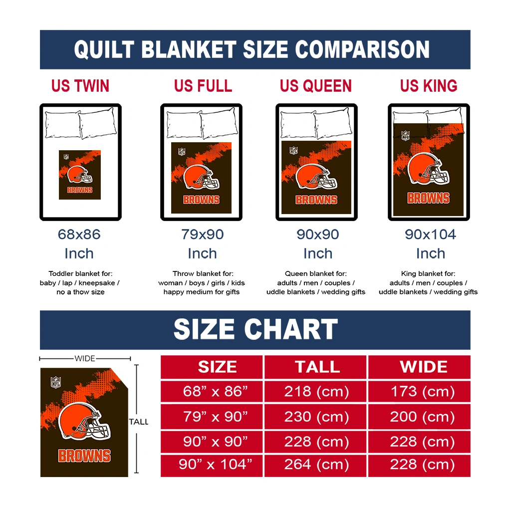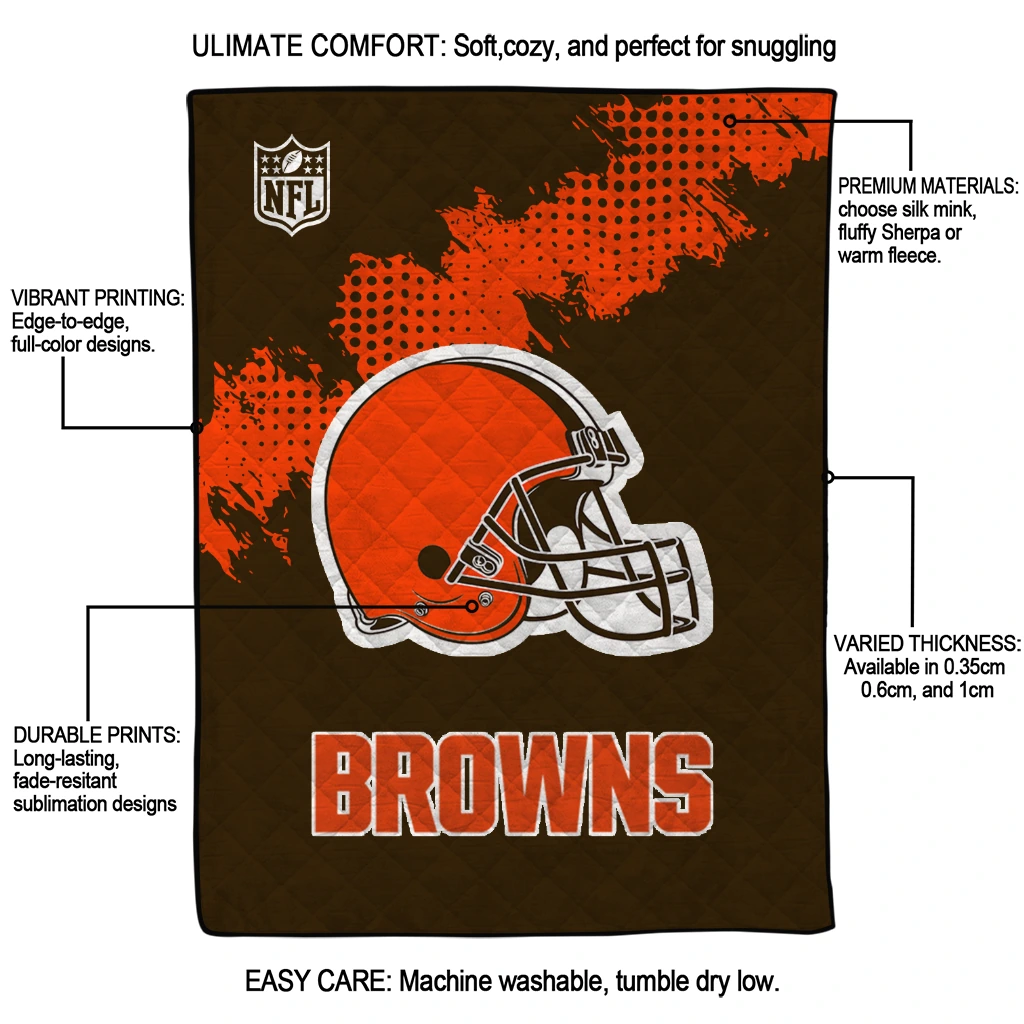 The Cleveland Browns Shield Badge Brown Quilt Blanket is more than a blanket—it’s everyday comfort, thoughtfully made. Crafted from premium quilting fabric with a soft microfiber touch, it offers a smooth hand-feel and lasting coziness. Layered quilting with a cotton-filled core provides adaptable warmth across seasons while maintaining a clean, tailored look on your bed or sofa.