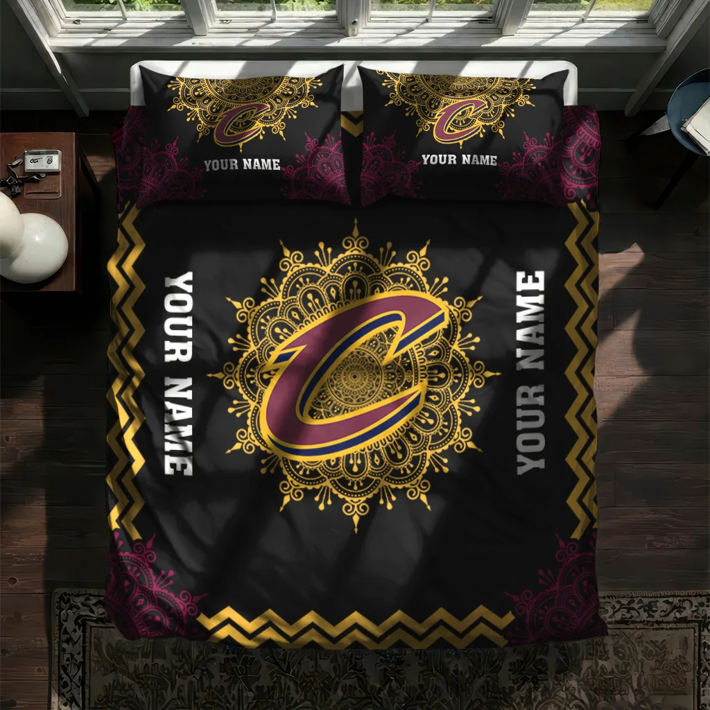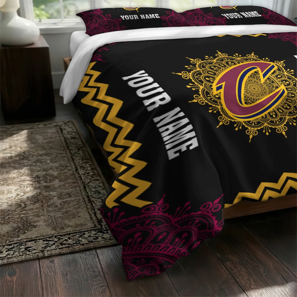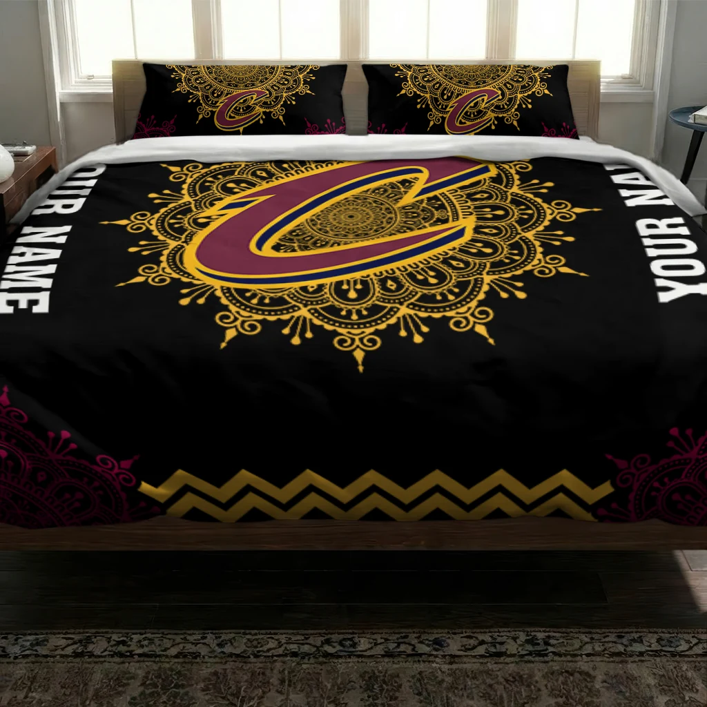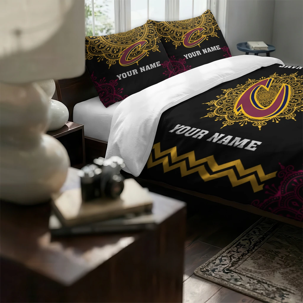 Cleveland Cavaliers Bedding Set – Custom Mandala Lacework Black Yellow