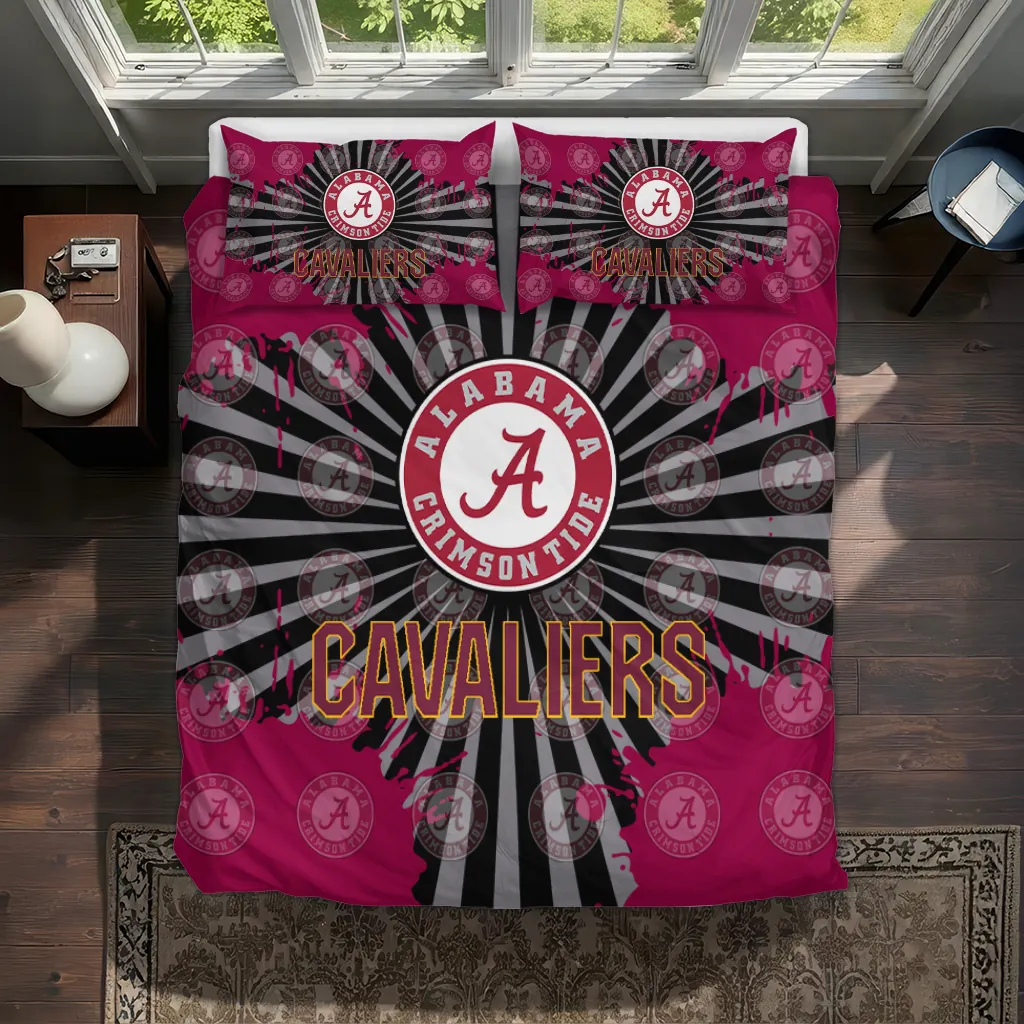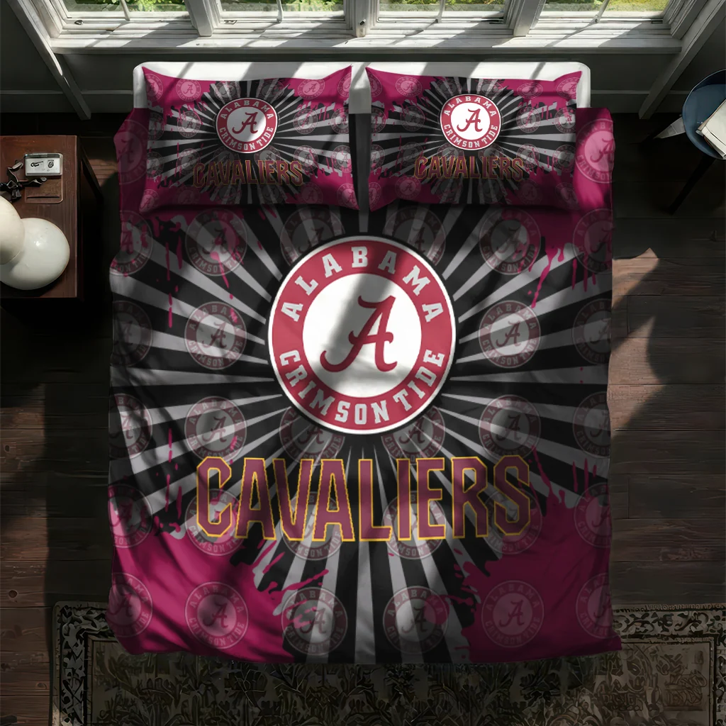 Cleveland Cavaliers Bedding Set – Sunburst Splatter Red Black