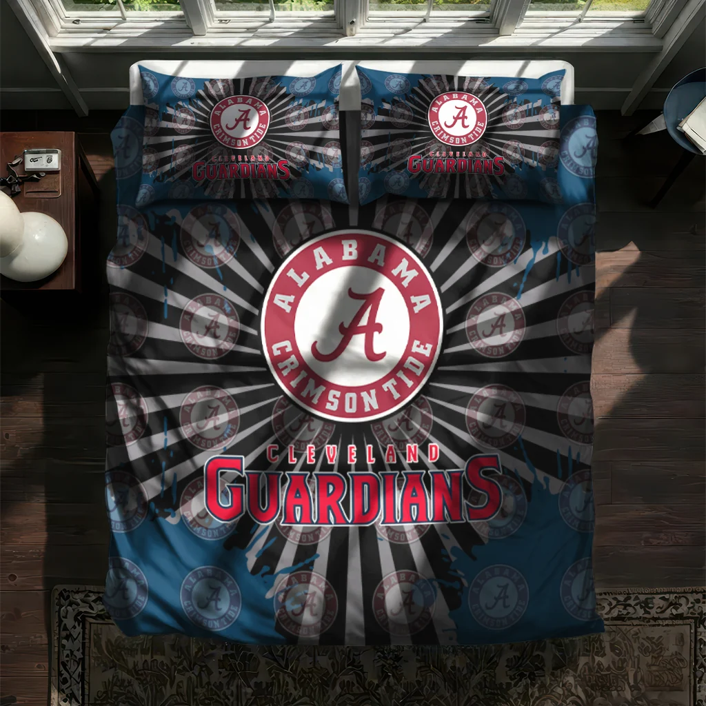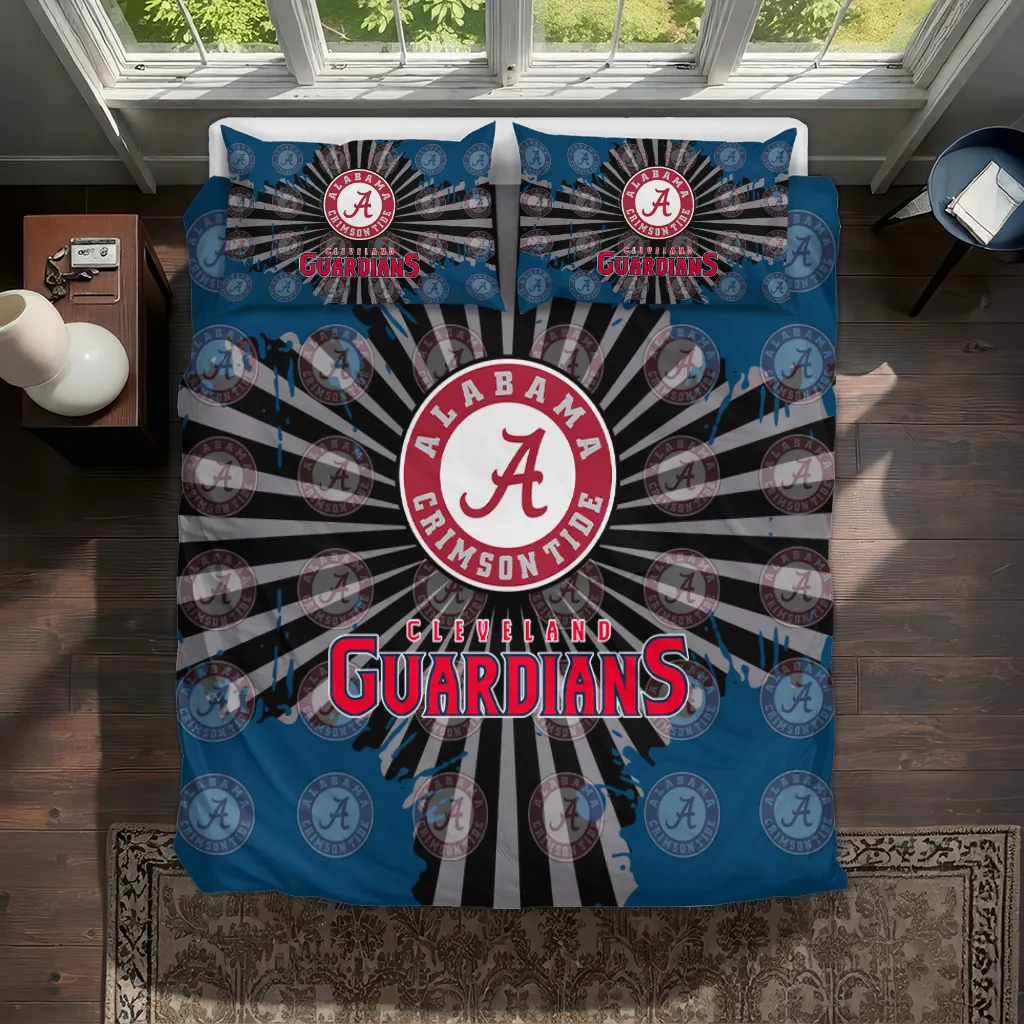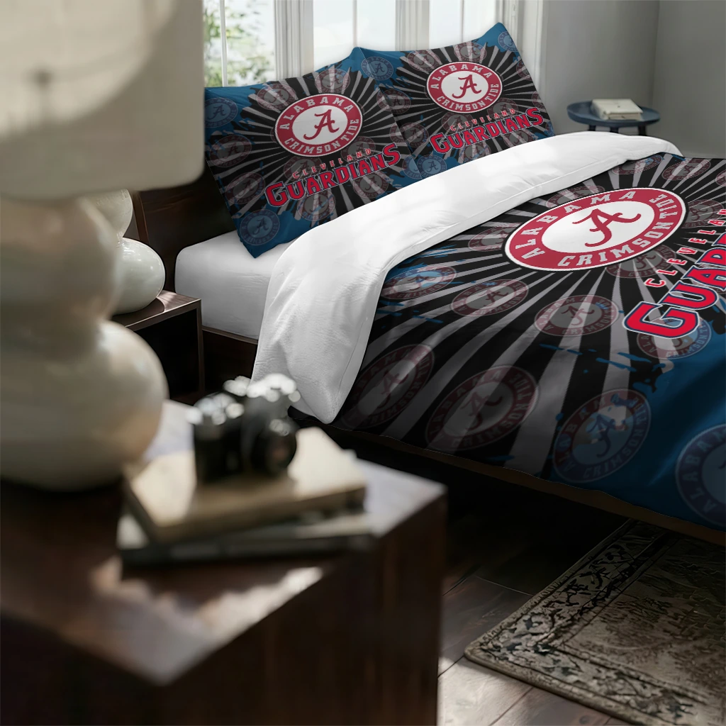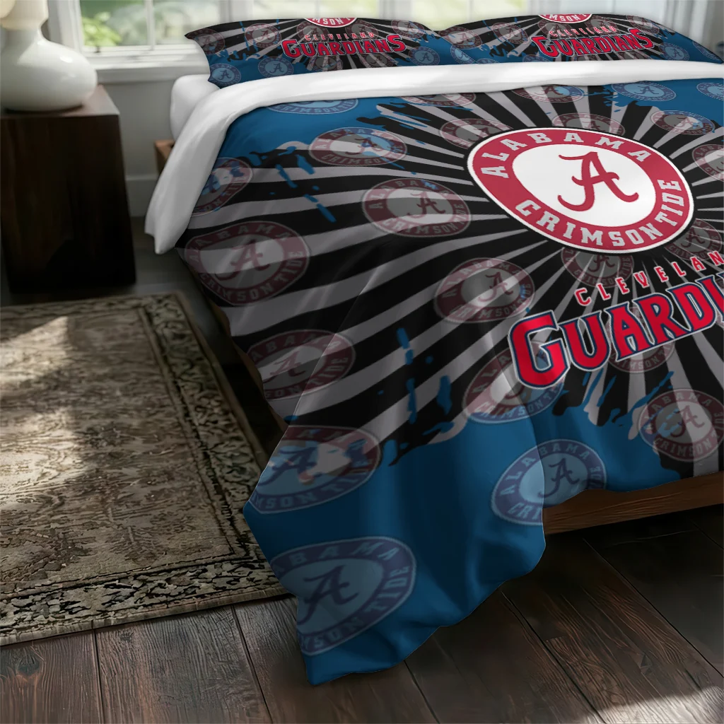 Cleveland Guardians Bedding Set – Sunburst Splatter Blue Black