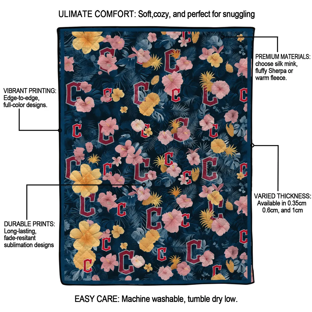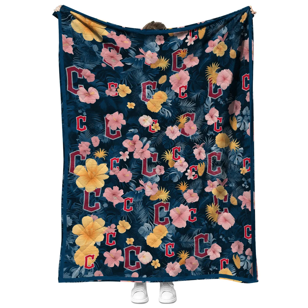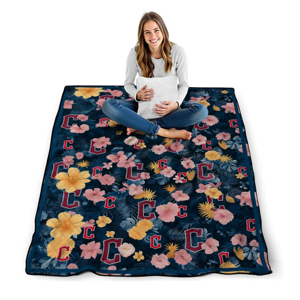 Cleveland Guardians Hibiscus Foliage Navy Blue Quilt Blanket