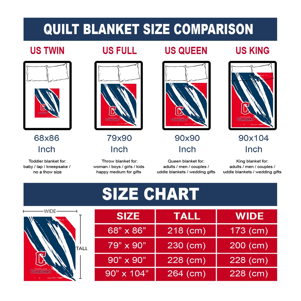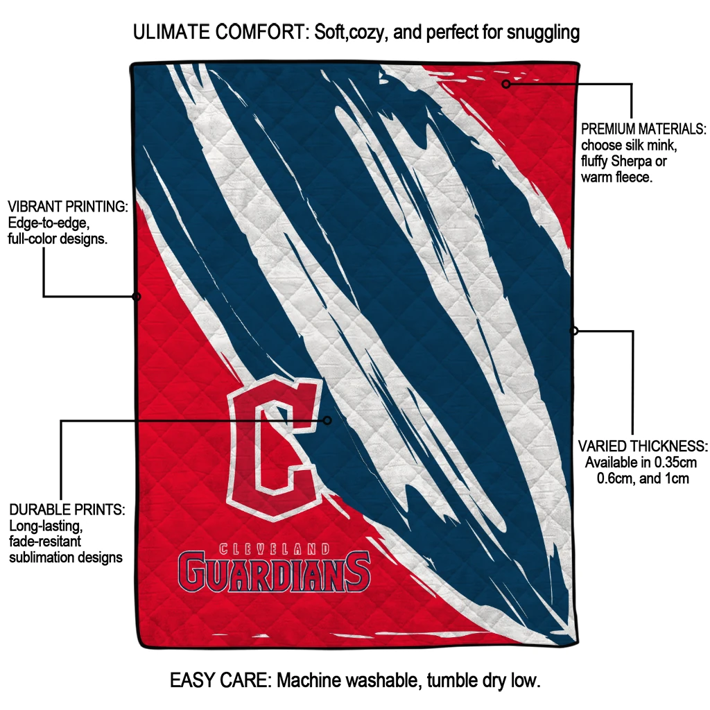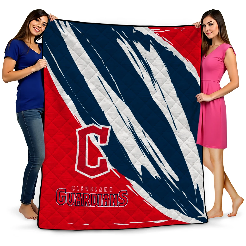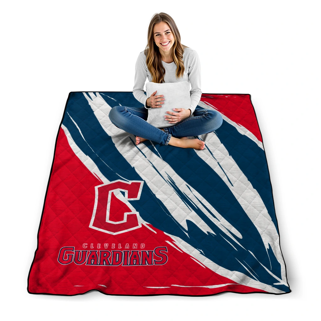 Cleveland Guardians Stroke Art Navy Blue White Quilt Blanket
