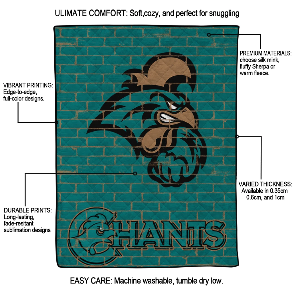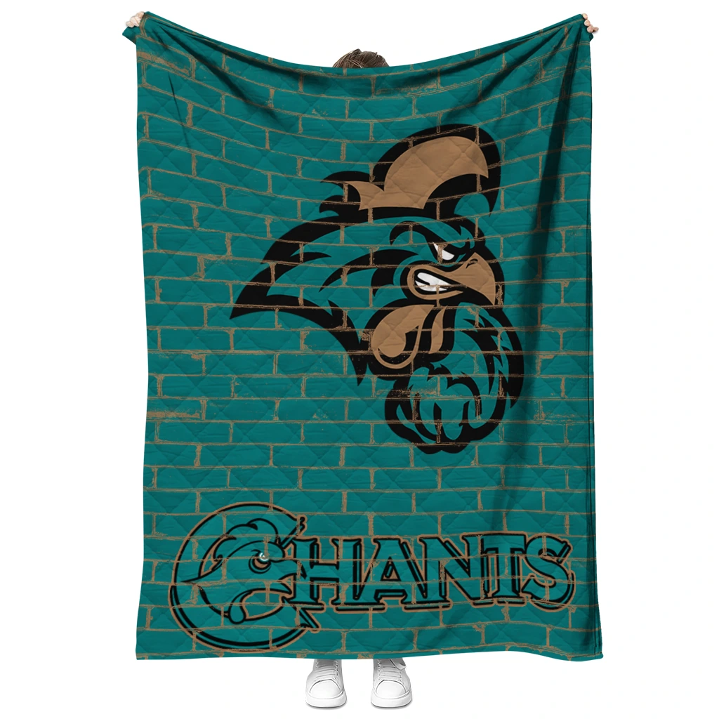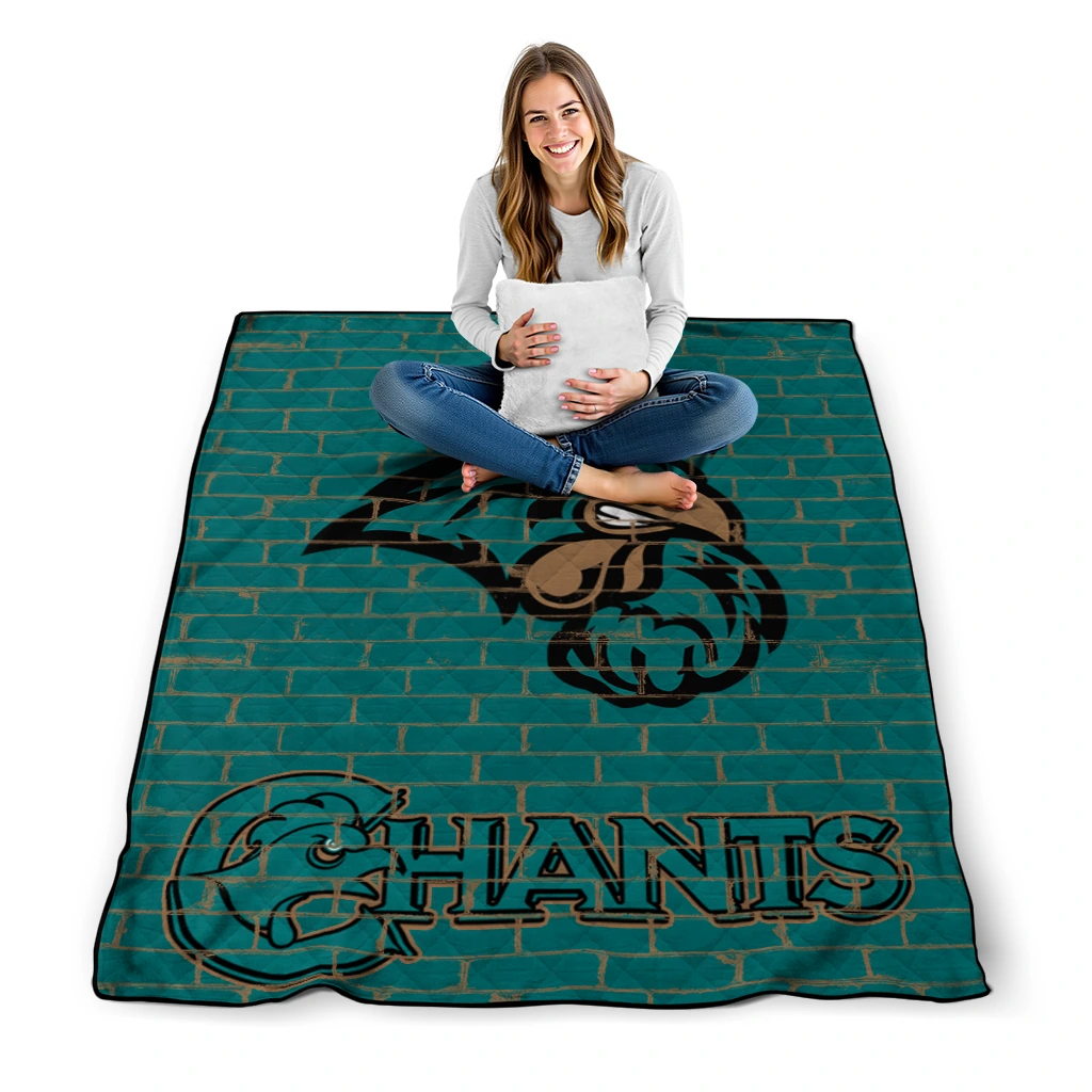 Wrap yourself in warmth and pride with the Coastal Carolina Chanticleers Brick Grid Green Quilt Blanket from the Coastal Carolina Chanticleers Blankets collection at Yes That Blanket. Made from 100% premium quilting-weight polyester blended with a touch of microfiber, this quilt offers a smooth, soft finish you’ll love. Choose between two quilting styles—Stipple or Diagonal—and enjoy the comfort of a cotton-filled layer inside that adds extra coziness for every season. The border is available in classic black or white, giving your design a clean, timeless edge.
