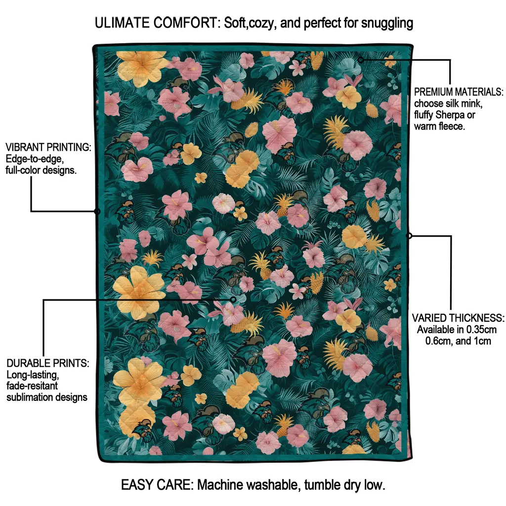 Wrap yourself in warmth and pride with the Coastal Carolina Chanticleers Hibiscus Foliage Green Quilt Blanket from the Coastal Carolina Chanticleers Blankets collection at Yes That Blanket. Made from 100% premium quilting-weight polyester blended with a touch of microfiber, this quilt offers a smooth, soft finish you’ll love. Choose between two quilting styles—Stipple or Diagonal—and enjoy the comfort of a cotton-filled layer inside that adds extra coziness for every season. The border is available in classic black or white, giving your design a clean, timeless edge.