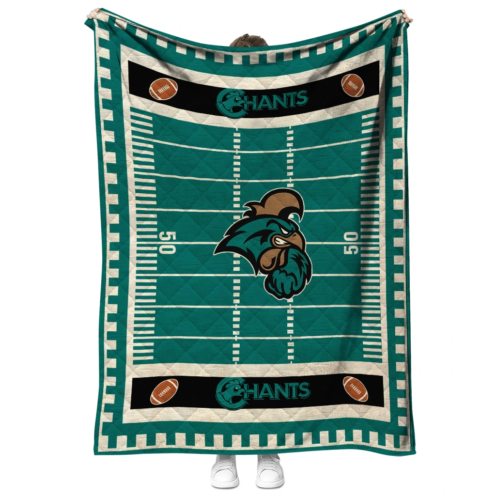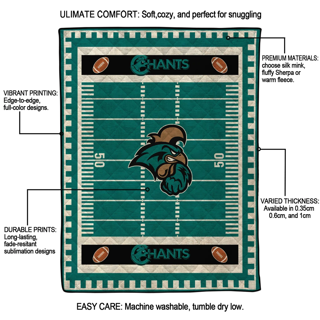Wrap yourself in warmth and pride with the Coastal Carolina Chanticleers Mickey Player Green Quilt Blanket from the Coastal Carolina Chanticleers Blankets collection at Yes That Blanket. Made from 100% premium quilting-weight polyester blended with a touch of microfiber, this quilt offers a smooth, soft finish you’ll love. Choose between two quilting styles—Stipple or Diagonal—and enjoy the comfort of a cotton-filled layer inside that adds extra coziness for every season. The border is available in classic black or white, giving your design a clean, timeless edge.
