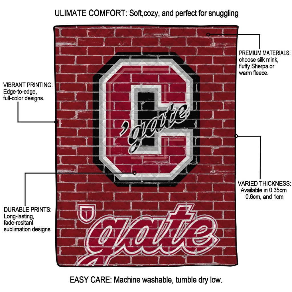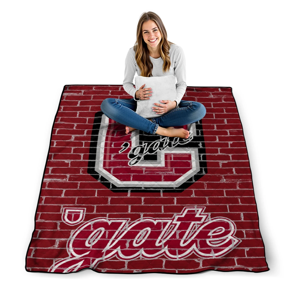 Wrap yourself in warmth and pride with the Colgate Raiders Brick Grid Maroon Quilt Blanket from the Colgate Raiders Blankets collection at Yes That Blanket. Made from 100% premium quilting-weight polyester blended with a touch of microfiber, this quilt offers a smooth, soft finish you’ll love. Choose between two quilting styles—Stipple or Diagonal—and enjoy the comfort of a cotton-filled layer inside that adds extra coziness for every season. The border is available in classic black or white, giving your design a clean, timeless edge.