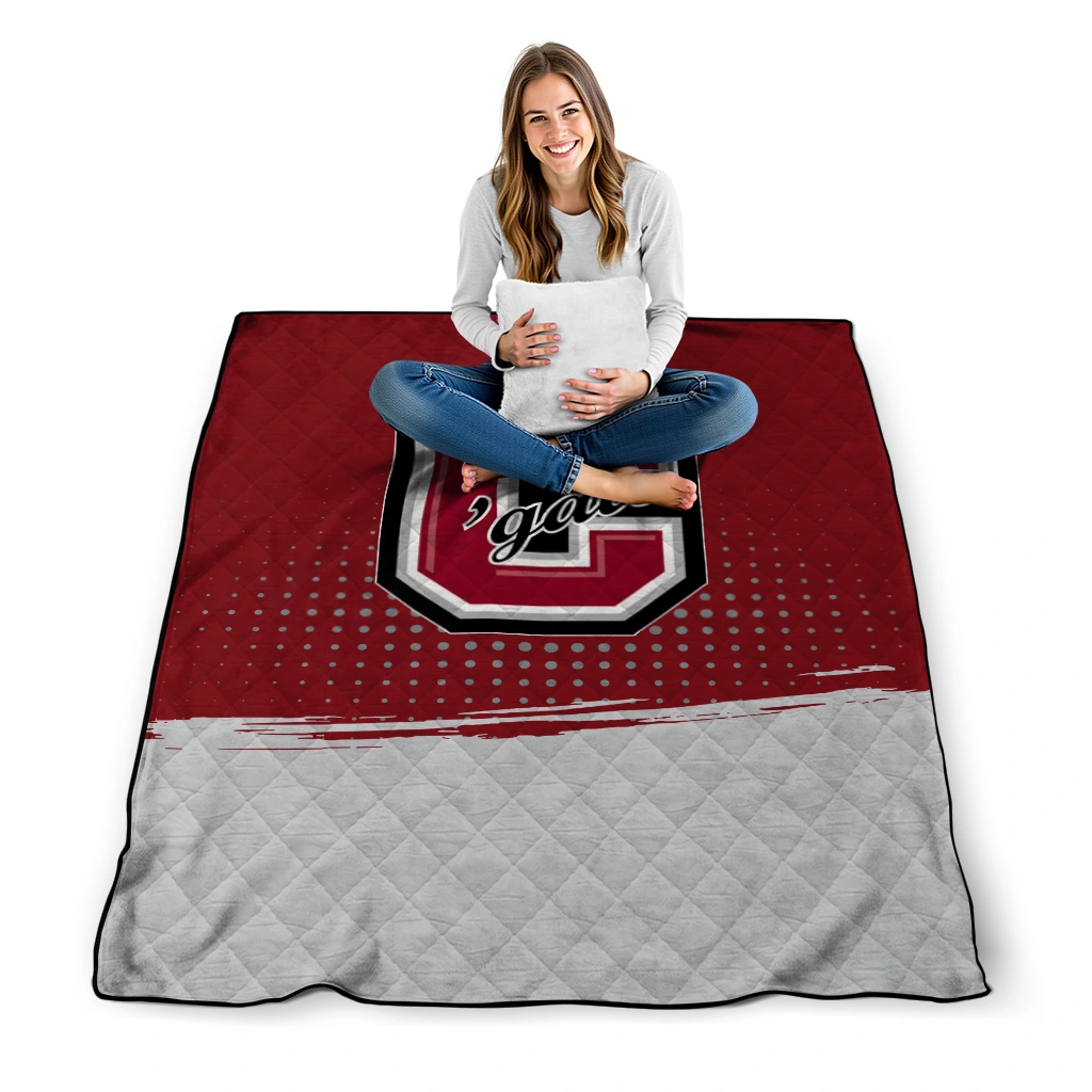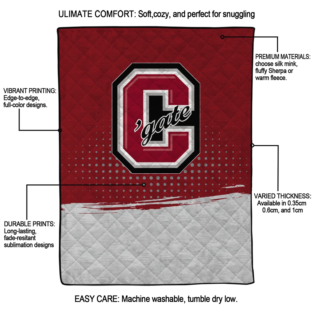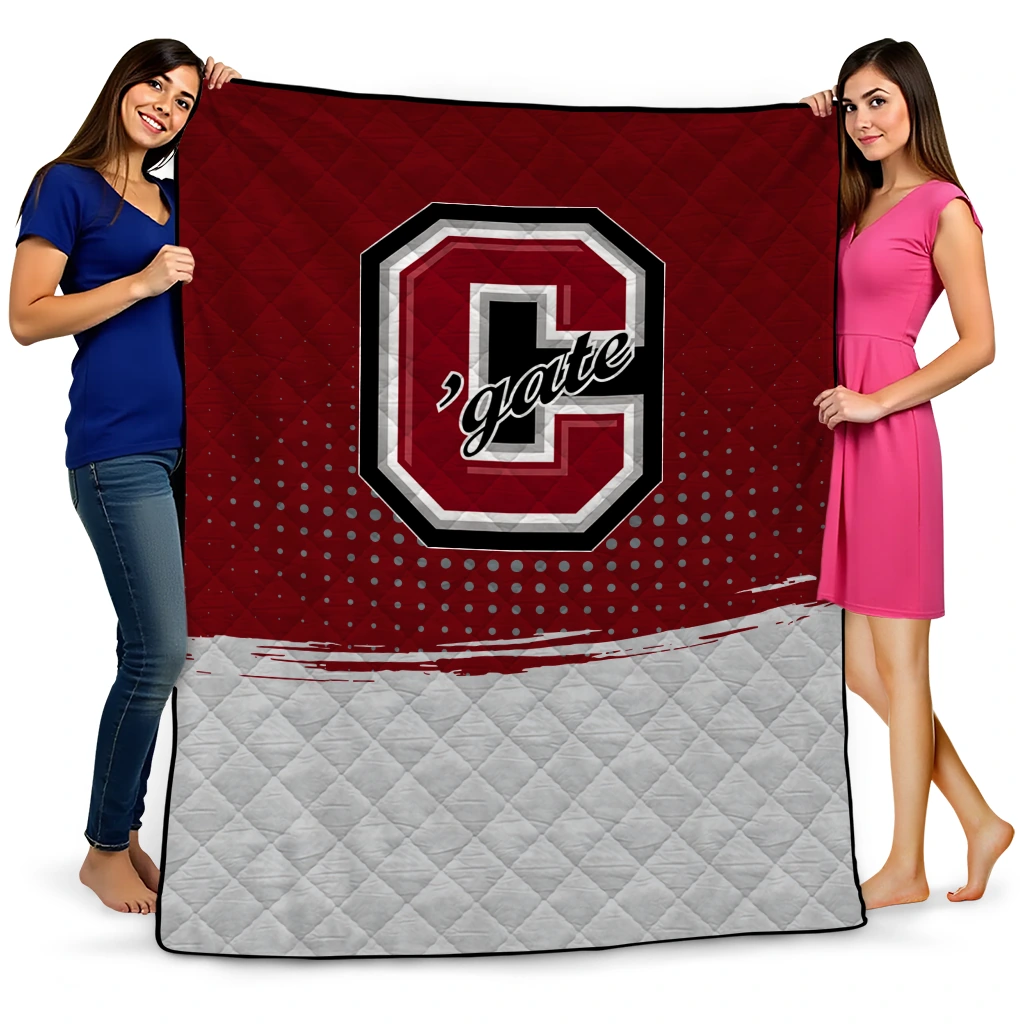 Wrap yourself in warmth and pride with the Colgate Raiders Dot Illusion Maroon Quilt Blanket from the Colgate Raiders Blankets collection at Yes That Blanket. Made from 100% premium quilting-weight polyester blended with a touch of microfiber, this quilt offers a smooth, soft finish you’ll love. Choose between two quilting styles—Stipple or Diagonal—and enjoy the comfort of a cotton-filled layer inside that adds extra coziness for every season. The border is available in classic black or white, giving your design a clean, timeless edge.