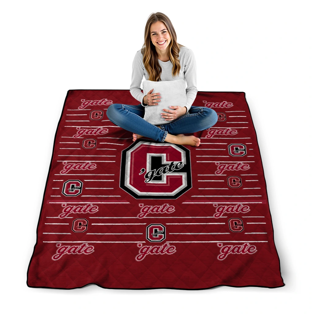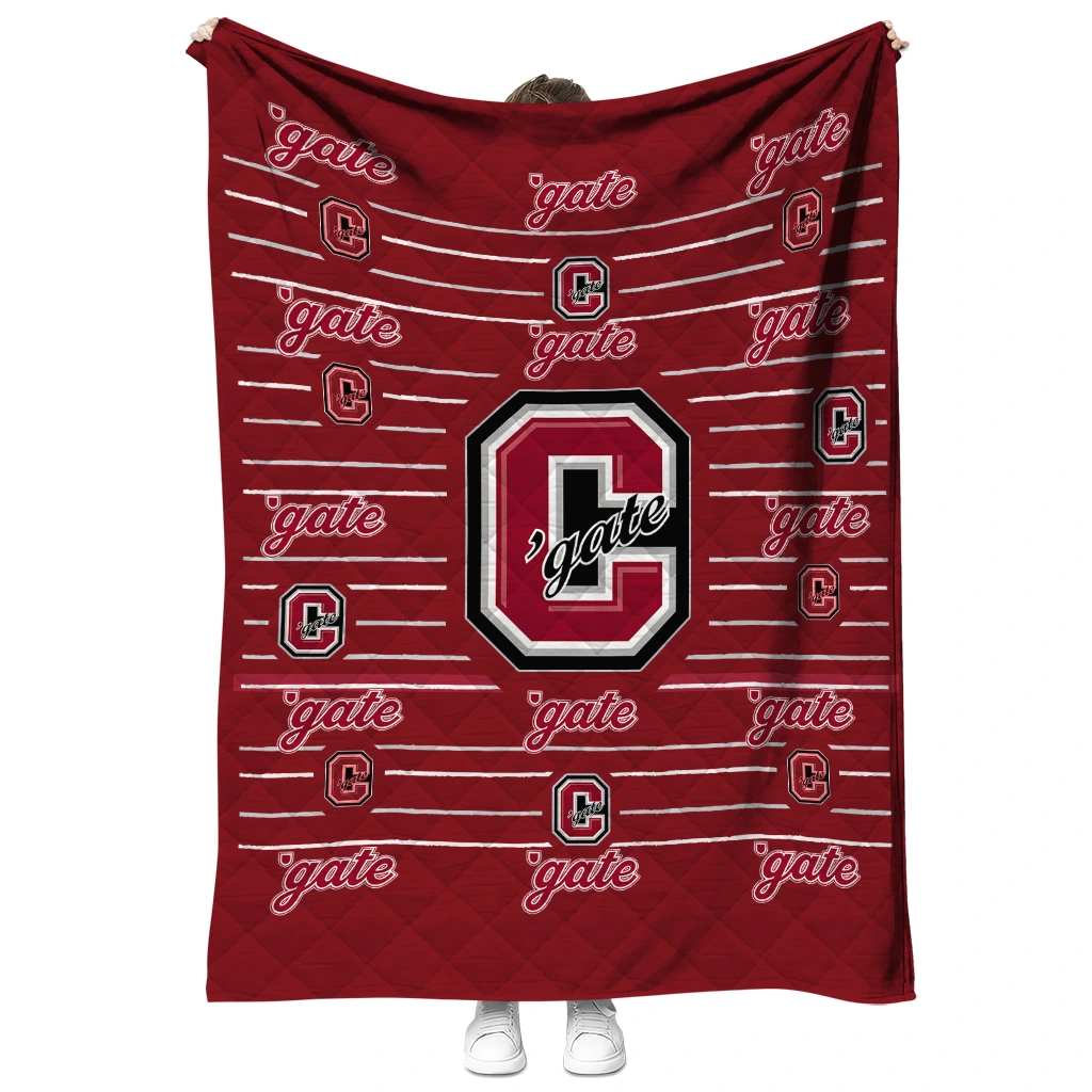 Wrap yourself in warmth and pride with the Colgate Raiders Handdrawn Stripes Maroon Quilt Blanket from the Colgate Raiders Blankets collection at Yes That Blanket. Made from 100% premium quilting-weight polyester blended with a touch of microfiber, this quilt offers a smooth, soft finish you’ll love. Choose between two quilting styles—Stipple or Diagonal—and enjoy the comfort of a cotton-filled layer inside that adds extra coziness for every season. The border is available in classic black or white, giving your design a clean, timeless edge.