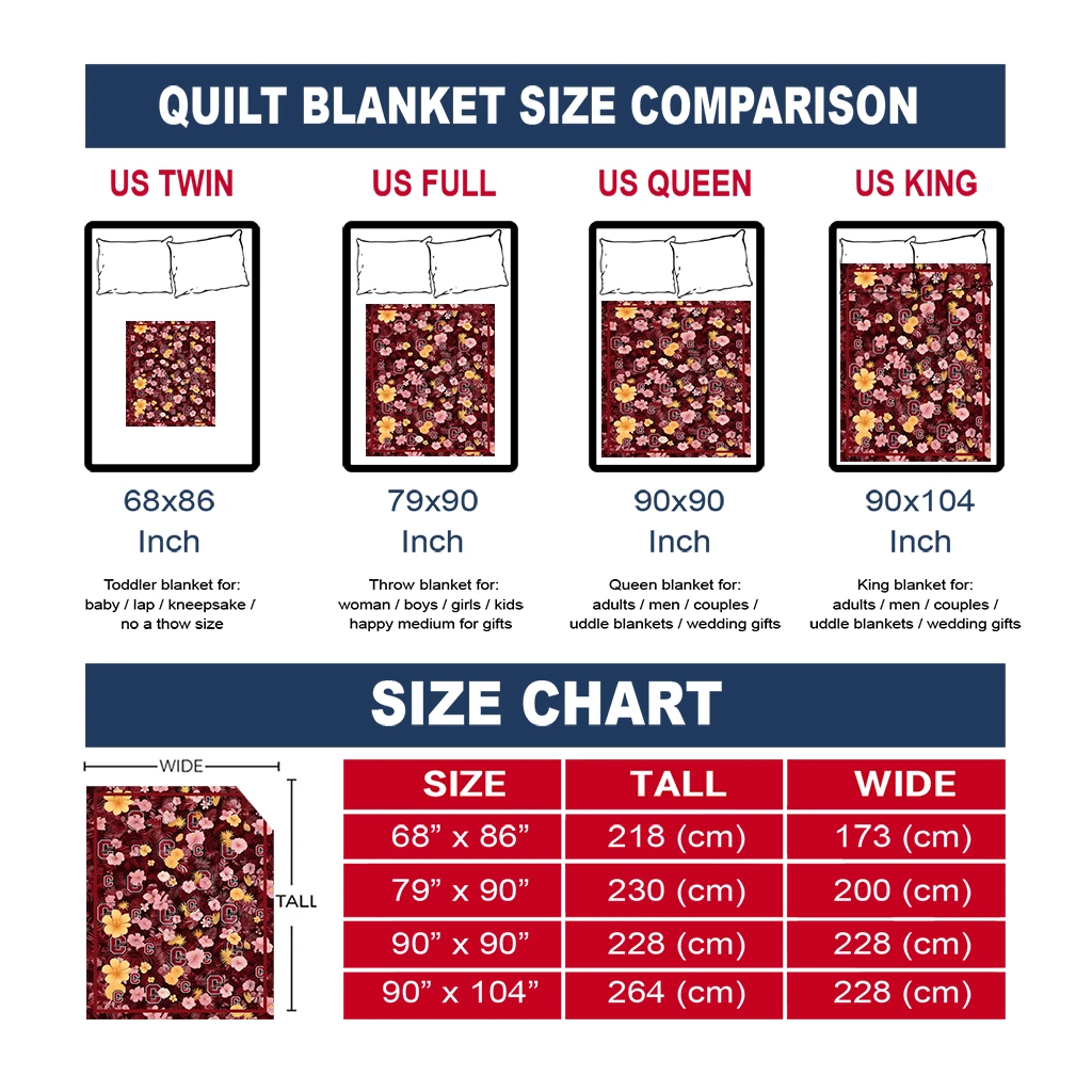 Wrap yourself in warmth and pride with the Colgate Raiders Hibiscus Foliage Maroon Quilt Blanket from the Colgate Raiders Blankets collection at Yes That Blanket. Made from 100% premium quilting-weight polyester blended with a touch of microfiber, this quilt offers a smooth, soft finish you’ll love. Choose between two quilting styles—Stipple or Diagonal—and enjoy the comfort of a cotton-filled layer inside that adds extra coziness for every season. The border is available in classic black or white, giving your design a clean, timeless edge.