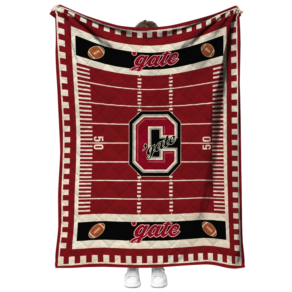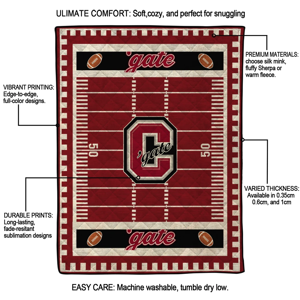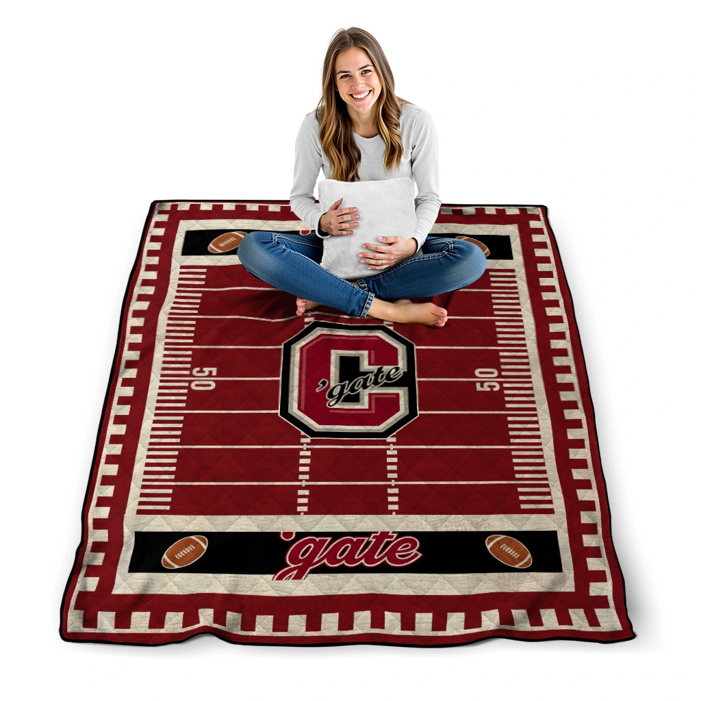 Wrap yourself in warmth and pride with the Colgate Raiders Mickey Player Maroon Quilt Blanket from the Colgate Raiders Blankets collection at Yes That Blanket. Made from 100% premium quilting-weight polyester blended with a touch of microfiber, this quilt offers a smooth, soft finish you’ll love. Choose between two quilting styles—Stipple or Diagonal—and enjoy the comfort of a cotton-filled layer inside that adds extra coziness for every season. The border is available in classic black or white, giving your design a clean, timeless edge.