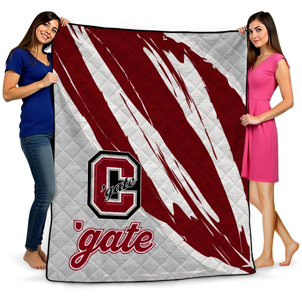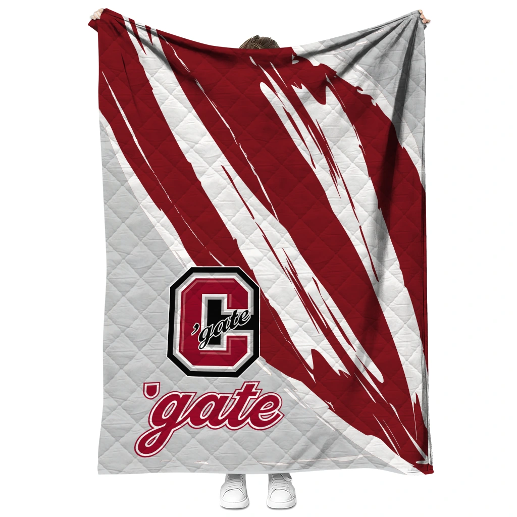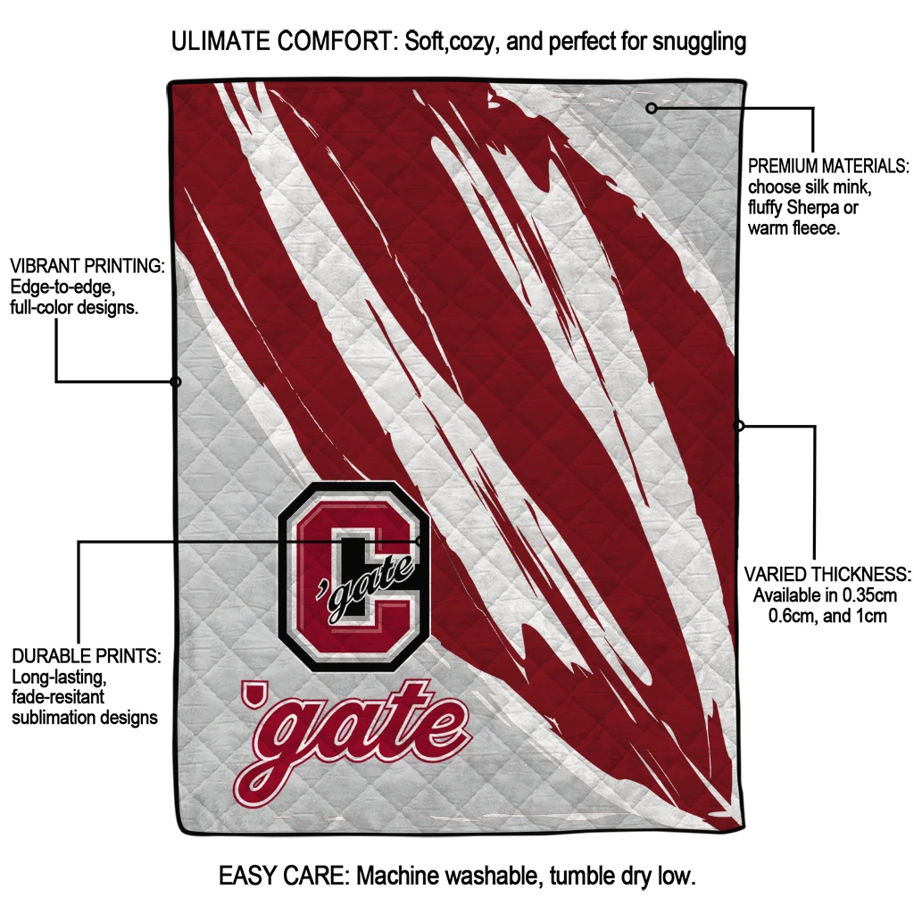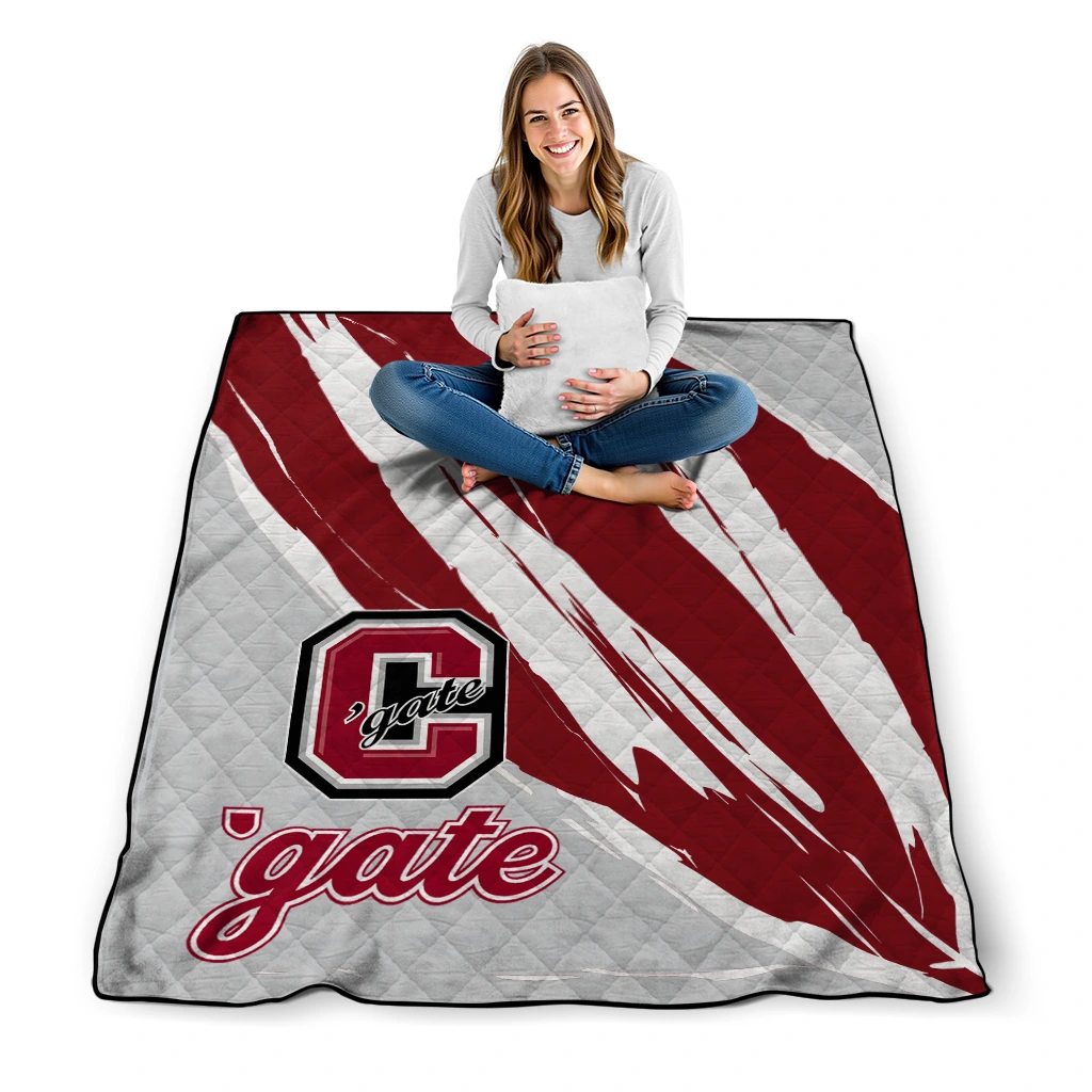 Wrap yourself in warmth and pride with the Colgate Raiders Stroke Art Maroon White Quilt Blanket from the Colgate Raiders Blankets collection at Yes That Blanket. Made from 100% premium quilting-weight polyester blended with a touch of microfiber, this quilt offers a smooth, soft finish you’ll love. Choose between two quilting styles—Stipple or Diagonal—and enjoy the comfort of a cotton-filled layer inside that adds extra coziness for every season. The border is available in classic black or white, giving your design a clean, timeless edge.