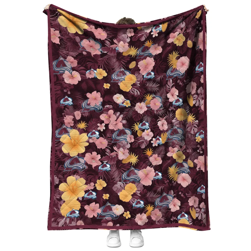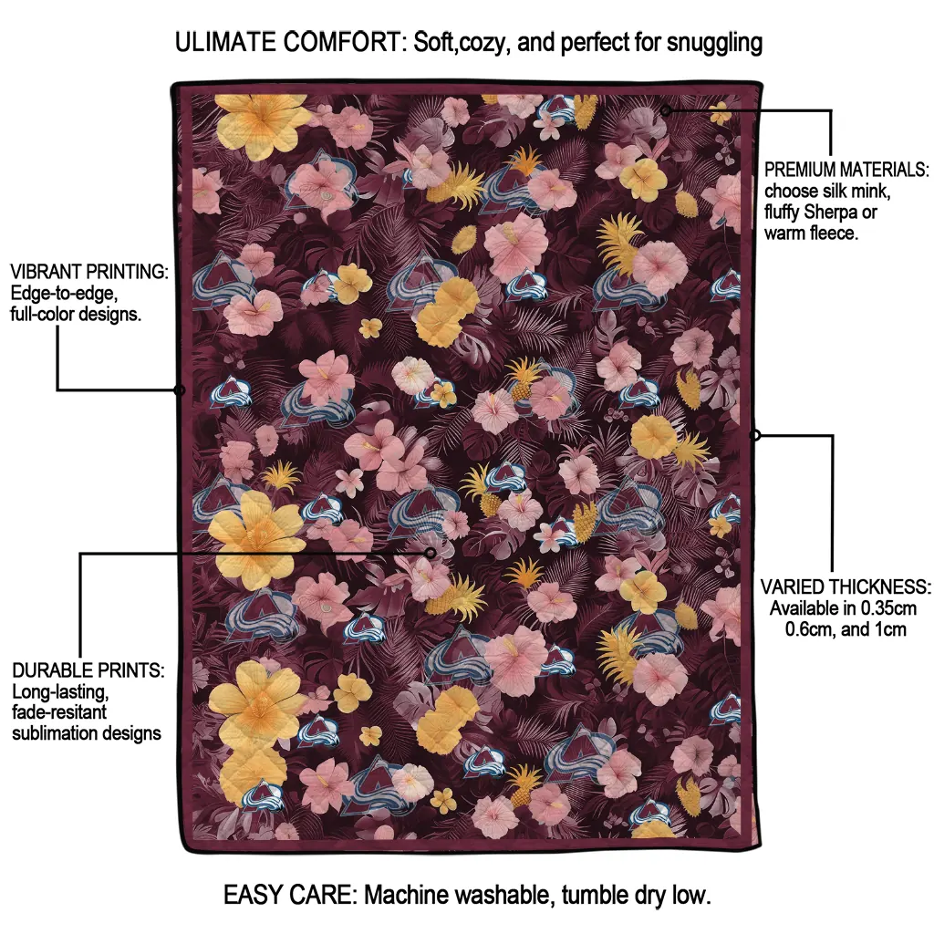 Colorado Avalanche Hibiscus Foliage Burgundy Quilt Blanket