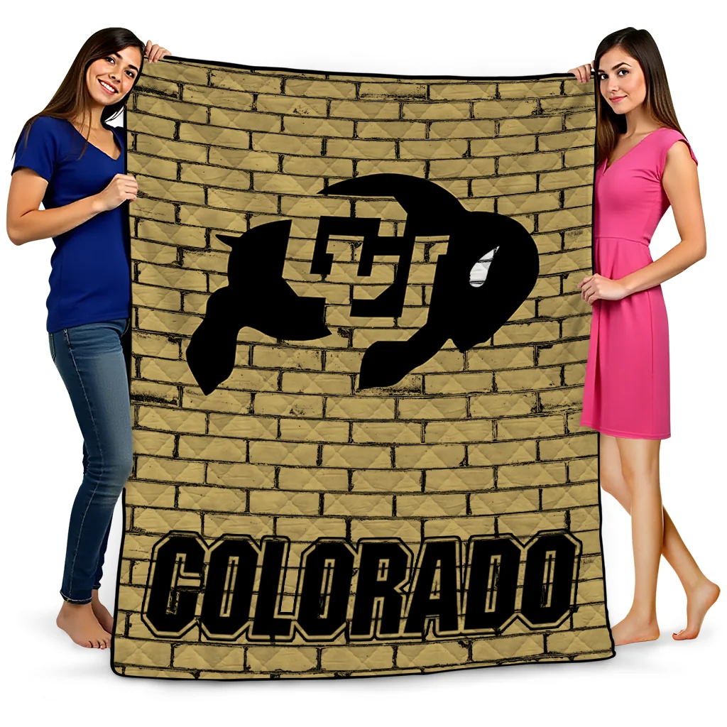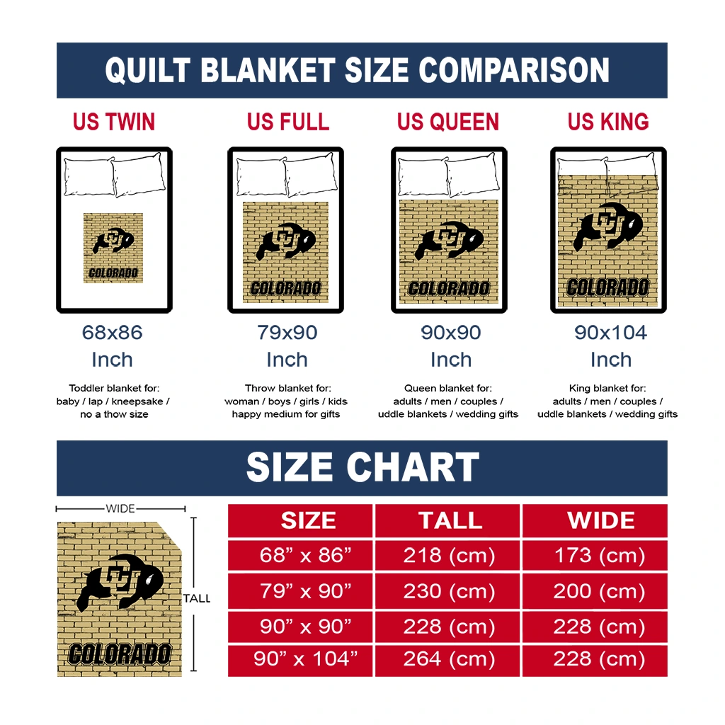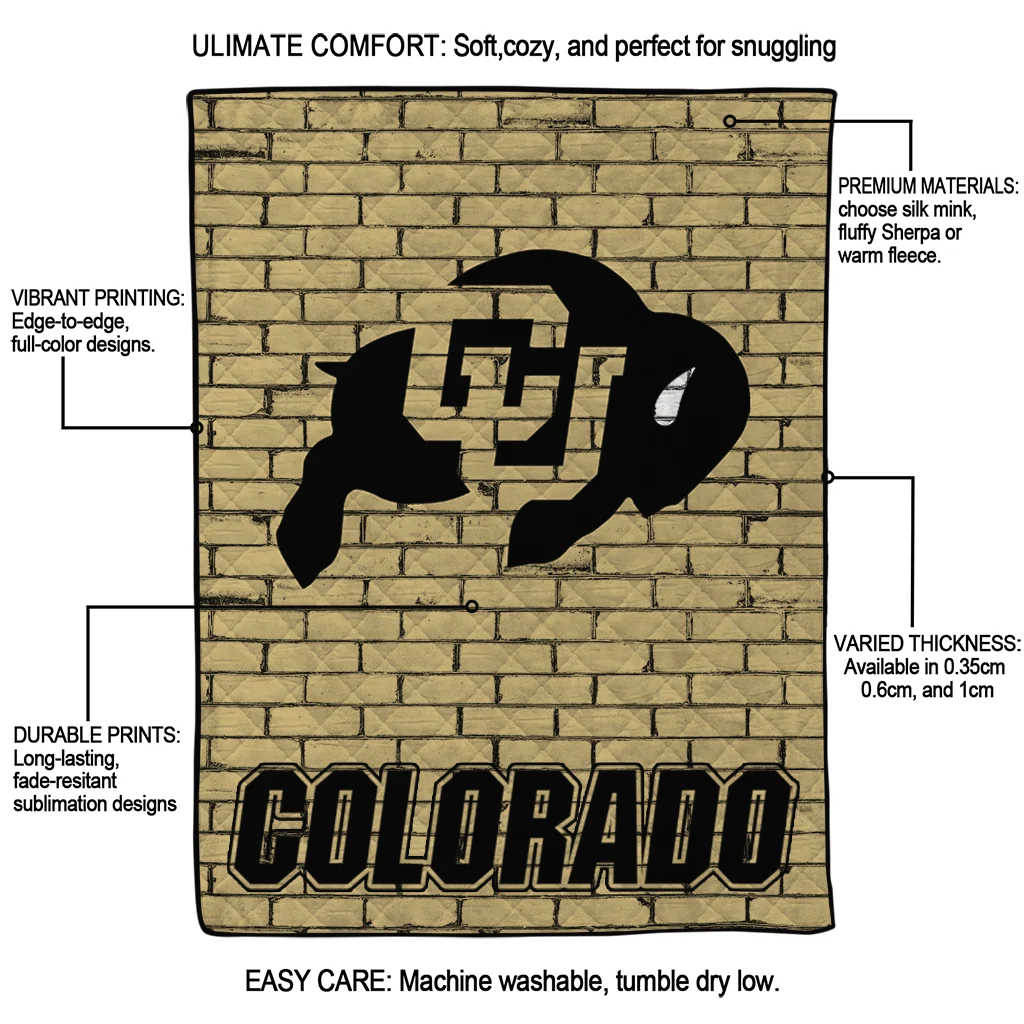 Wrap yourself in warmth and pride with the Colorado Buffaloes Brick Grid Gold Quilt Blanket from the Colorado Buffaloes Blankets collection at Yes That Blanket. Made from 100% premium quilting-weight polyester blended with a touch of microfiber, this quilt offers a smooth, soft finish you’ll love. Choose between two quilting styles—Stipple or Diagonal—and enjoy the comfort of a cotton-filled layer inside that adds extra coziness for every season. The border is available in classic black or white, giving your design a clean, timeless edge.