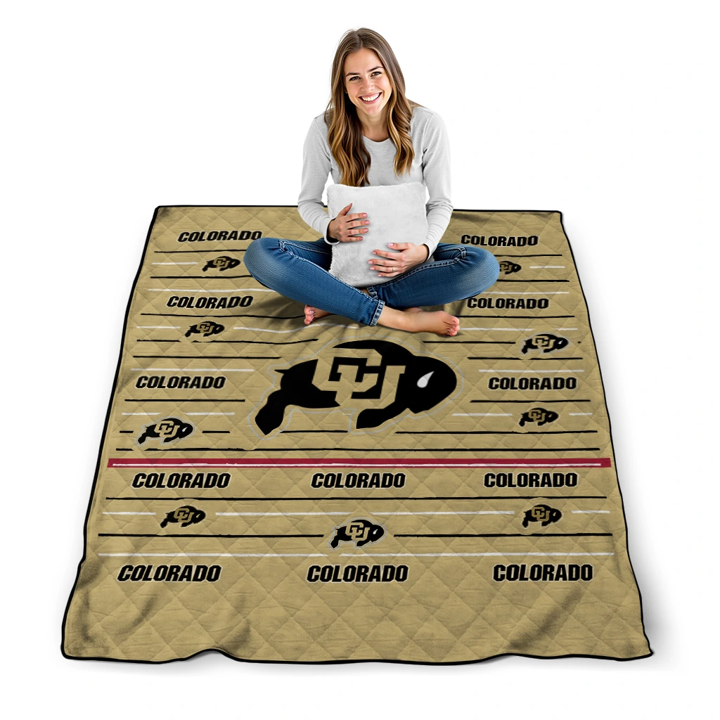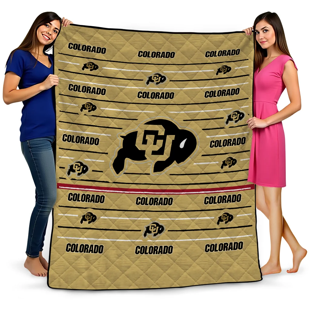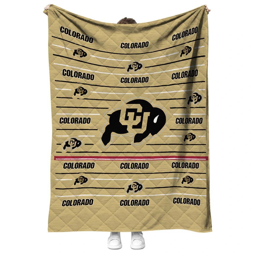 Colorado Buffaloes Handdrawn Stripes Gold Quilt Blanket