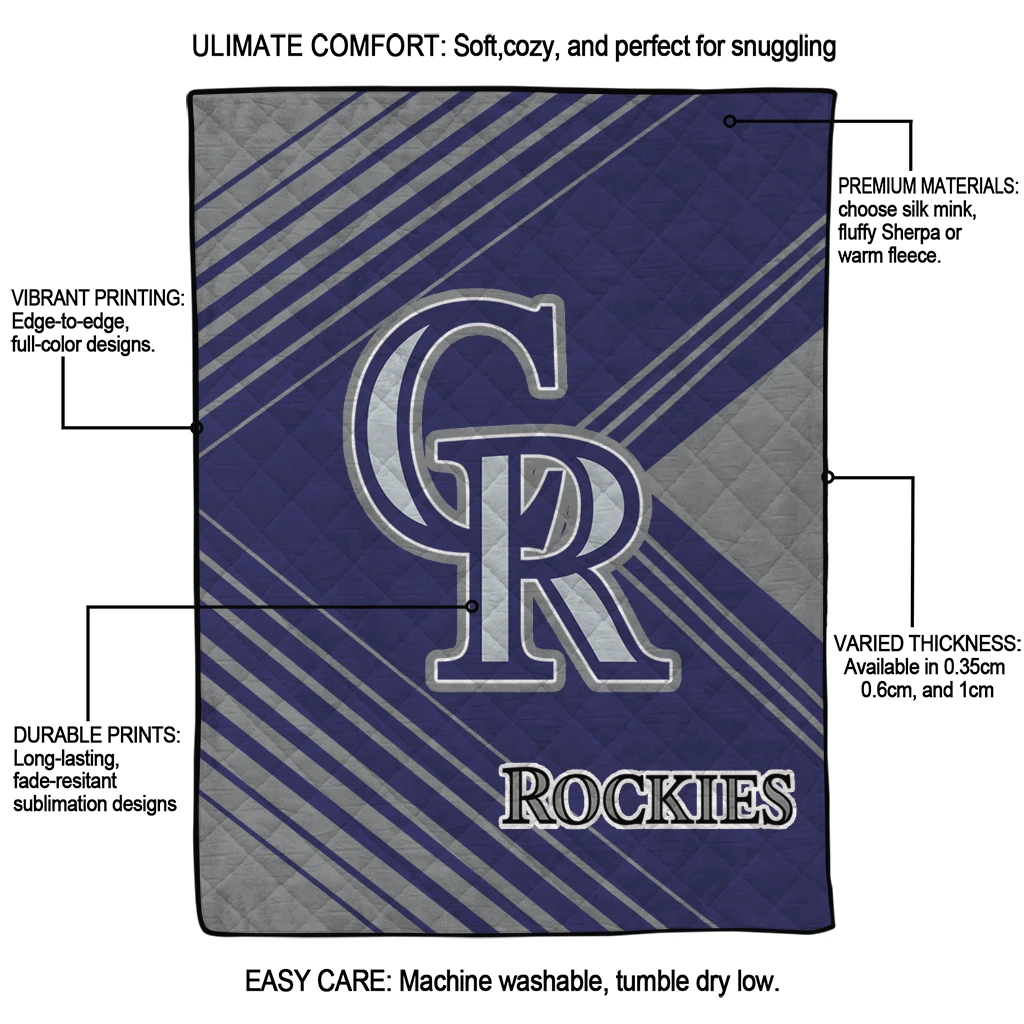 Wrap yourself in warmth and pride with the Colorado Rockies Arrow Layers Blue Quilt Blanket from the Colorado Rockies Blankets collection at Yes That Blanket. Made from 100% premium quilting-weight polyester blended with a touch of microfiber, this quilt offers a smooth, soft finish you’ll love. Choose between two quilting styles—Stipple or Diagonal—and enjoy the comfort of a cotton-filled layer inside that adds extra coziness for every season. The border is available in classic black or white, giving your design a clean, timeless edge.