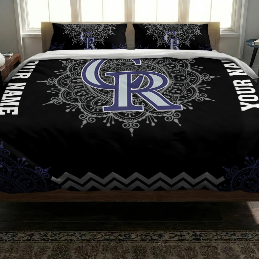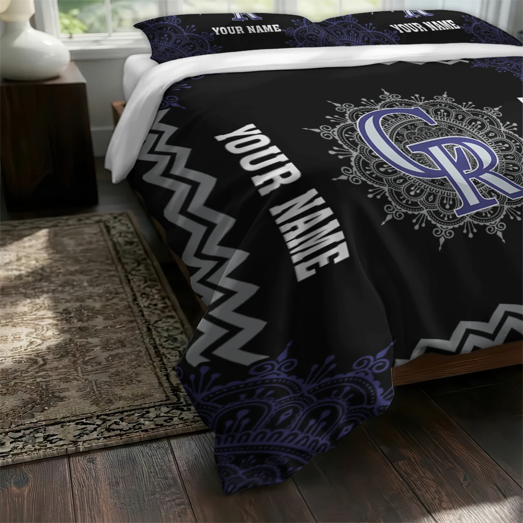 Colorado Rockies Bedding Set – Customized Mandala Lacework Black Purple