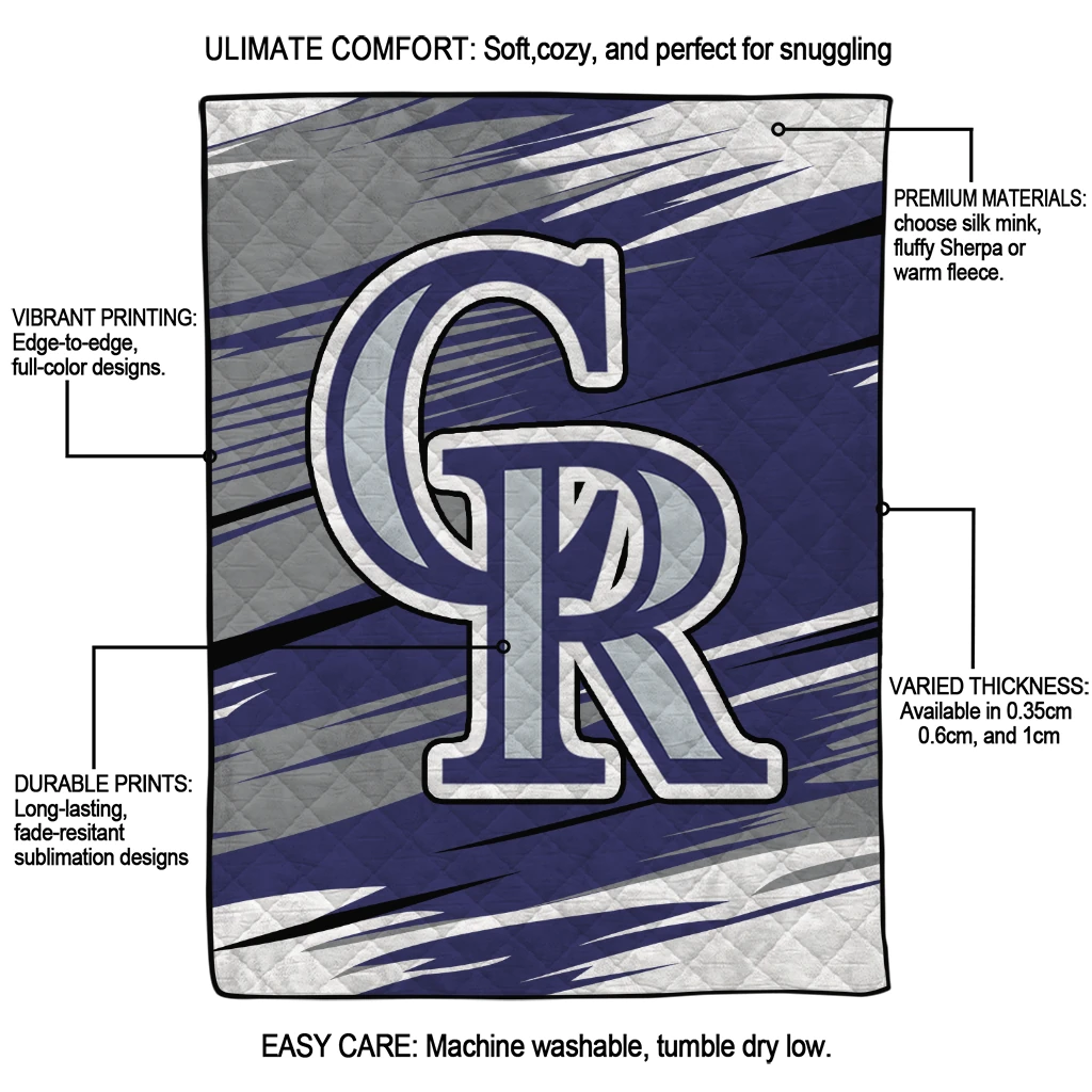 The Colorado Rockies Wild Lines Blue White Quilt Blanket is more than a blanket—it’s everyday comfort, thoughtfully made. Crafted from premium quilting fabric with a soft microfiber touch, it offers a smooth hand-feel and lasting coziness. Layered quilting with a cotton-filled core provides adaptable warmth across seasons while maintaining a clean, tailored look on your bed or sofa.