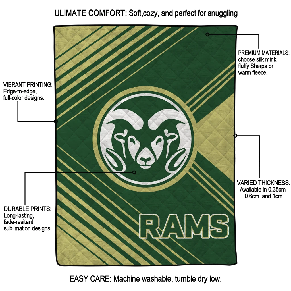 Wrap yourself in warmth and pride with the Colorado State Rams Arrow Layers Green Quilt Blanket from the Colorado State Rams Blankets collection at Yes That Blanket. Made from 100% premium quilting-weight polyester blended with a touch of microfiber, this quilt offers a smooth, soft finish you’ll love. Choose between two quilting styles—Stipple or Diagonal—and enjoy the comfort of a cotton-filled layer inside that adds extra coziness for every season. The border is available in classic black or white, giving your design a clean, timeless edge.