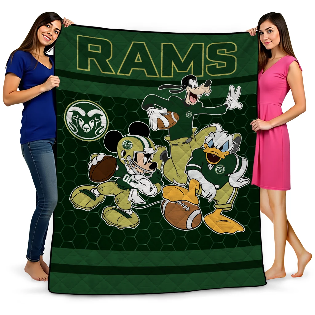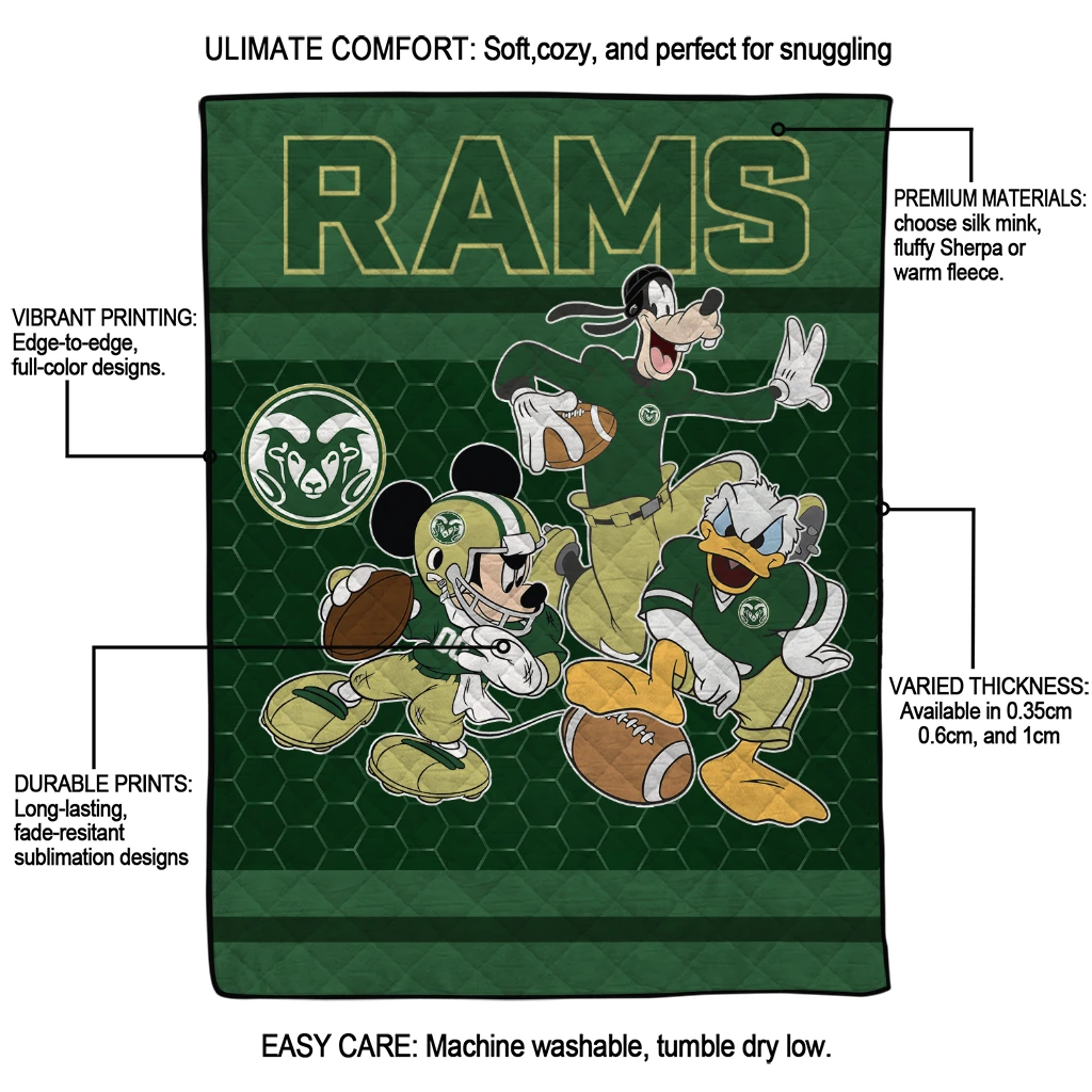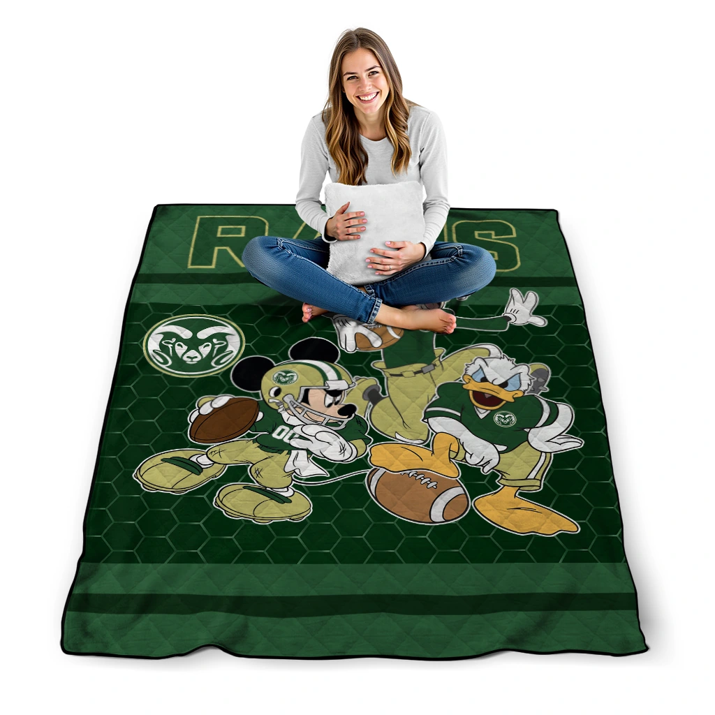 Wrap yourself in warmth and pride with the Colorado State Rams Disney Football Green Quilt Blanket from the Colorado State Rams Blankets collection at Yes That Blanket. Made from 100% premium quilting-weight polyester blended with a touch of microfiber, this quilt offers a smooth, soft finish you’ll love. Choose between two quilting styles—Stipple or Diagonal—and enjoy the comfort of a cotton-filled layer inside that adds extra coziness for every season. The border is available in classic black or white, giving your design a clean, timeless edge.