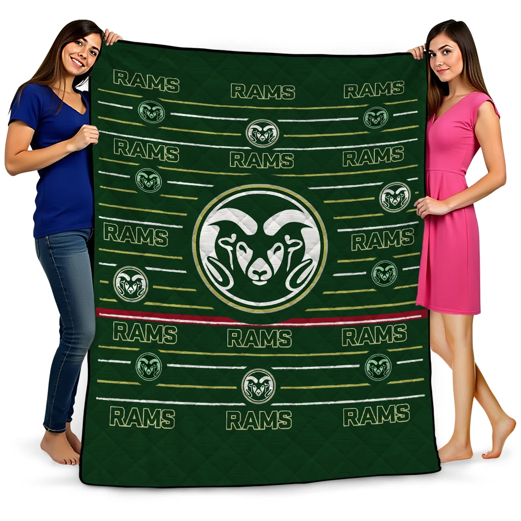 Wrap yourself in warmth and pride with the Colorado State Rams Handdrawn Stripes Green Quilt Blanket from the Colorado State Rams Blankets collection at Yes That Blanket. Made from 100% premium quilting-weight polyester blended with a touch of microfiber, this quilt offers a smooth, soft finish you’ll love. Choose between two quilting styles—Stipple or Diagonal—and enjoy the comfort of a cotton-filled layer inside that adds extra coziness for every season. The border is available in classic black or white, giving your design a clean, timeless edge.