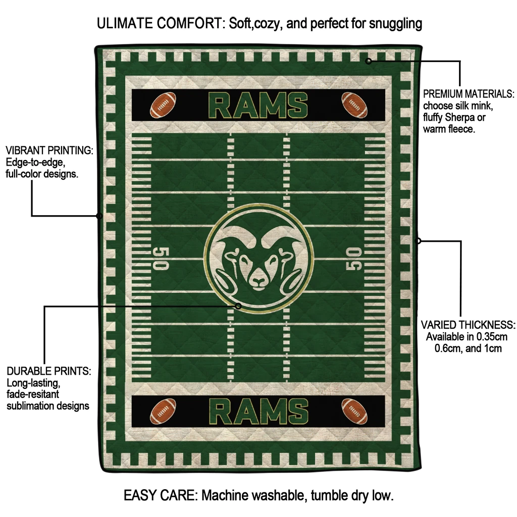 Wrap yourself in warmth and pride with the Colorado State Rams Mickey Player Green Quilt Blanket from the Colorado State Rams Blankets collection at Yes That Blanket. Made from 100% premium quilting-weight polyester blended with a touch of microfiber, this quilt offers a smooth, soft finish you’ll love. Choose between two quilting styles—Stipple or Diagonal—and enjoy the comfort of a cotton-filled layer inside that adds extra coziness for every season. The border is available in classic black or white, giving your design a clean, timeless edge.