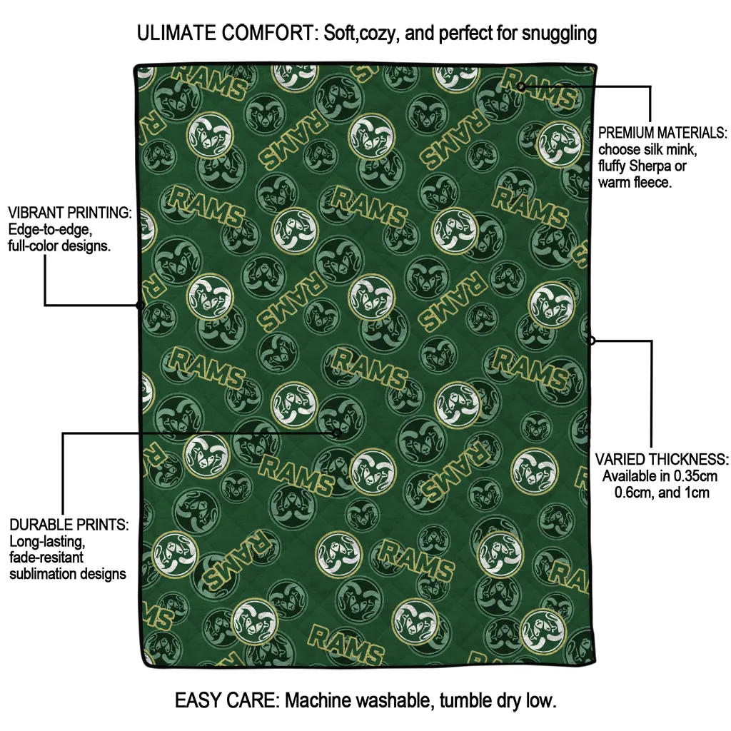 Wrap yourself in warmth and pride with the Colorado State Rams Solid Classic Green Quilt Blanket from the Colorado State Rams Blankets collection at Yes That Blanket. Made from 100% premium quilting-weight polyester blended with a touch of microfiber, this quilt offers a smooth, soft finish you’ll love. Choose between two quilting styles—Stipple or Diagonal—and enjoy the comfort of a cotton-filled layer inside that adds extra coziness for every season. The border is available in classic black or white, giving your design a clean, timeless edge.