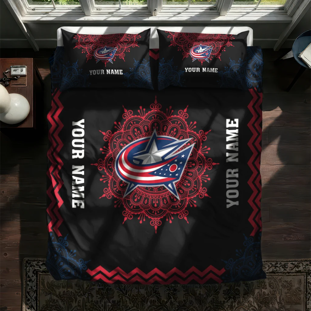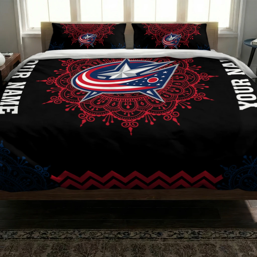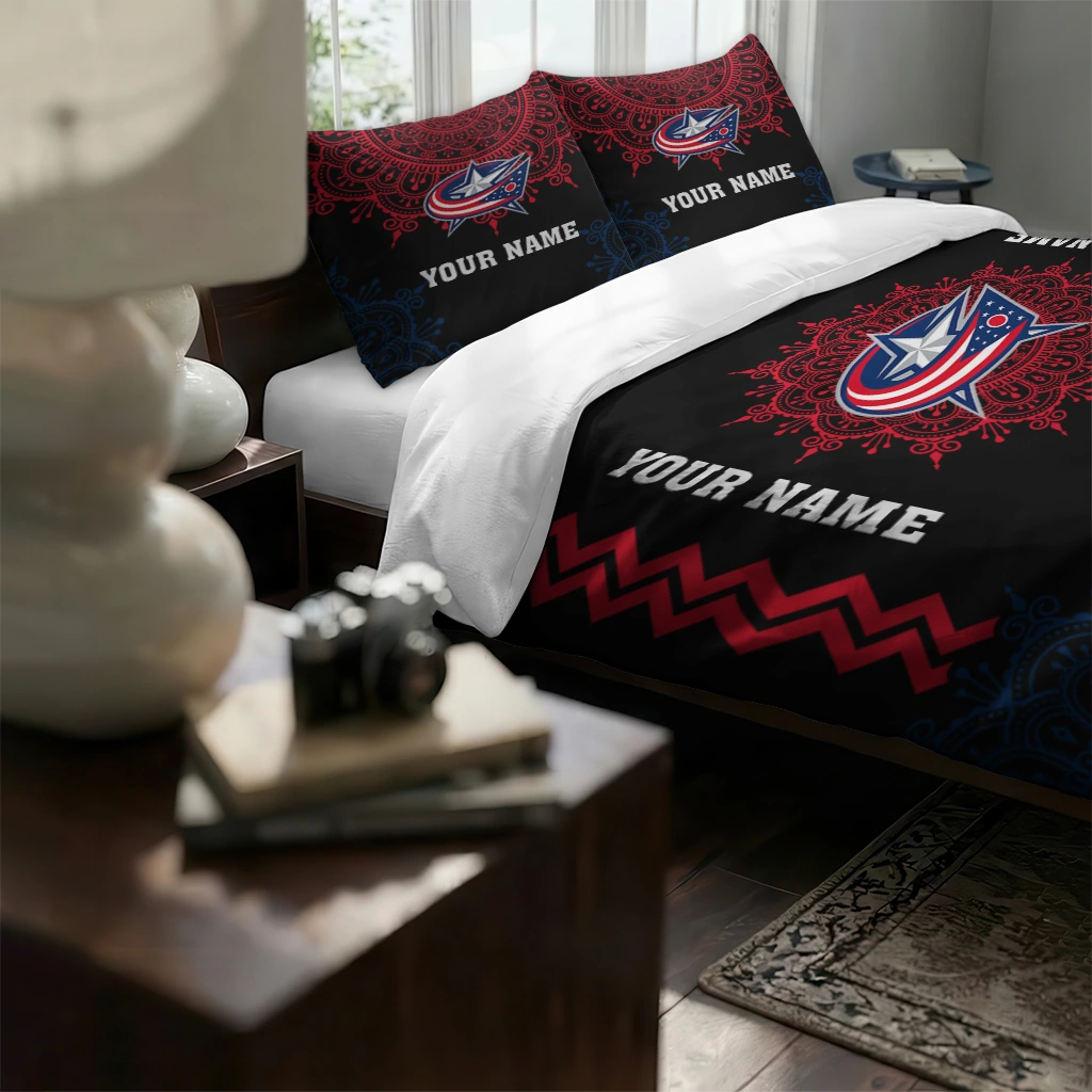 Columbus Blue Jackets Bedding Set – Custom Mandala Lacework Black Red