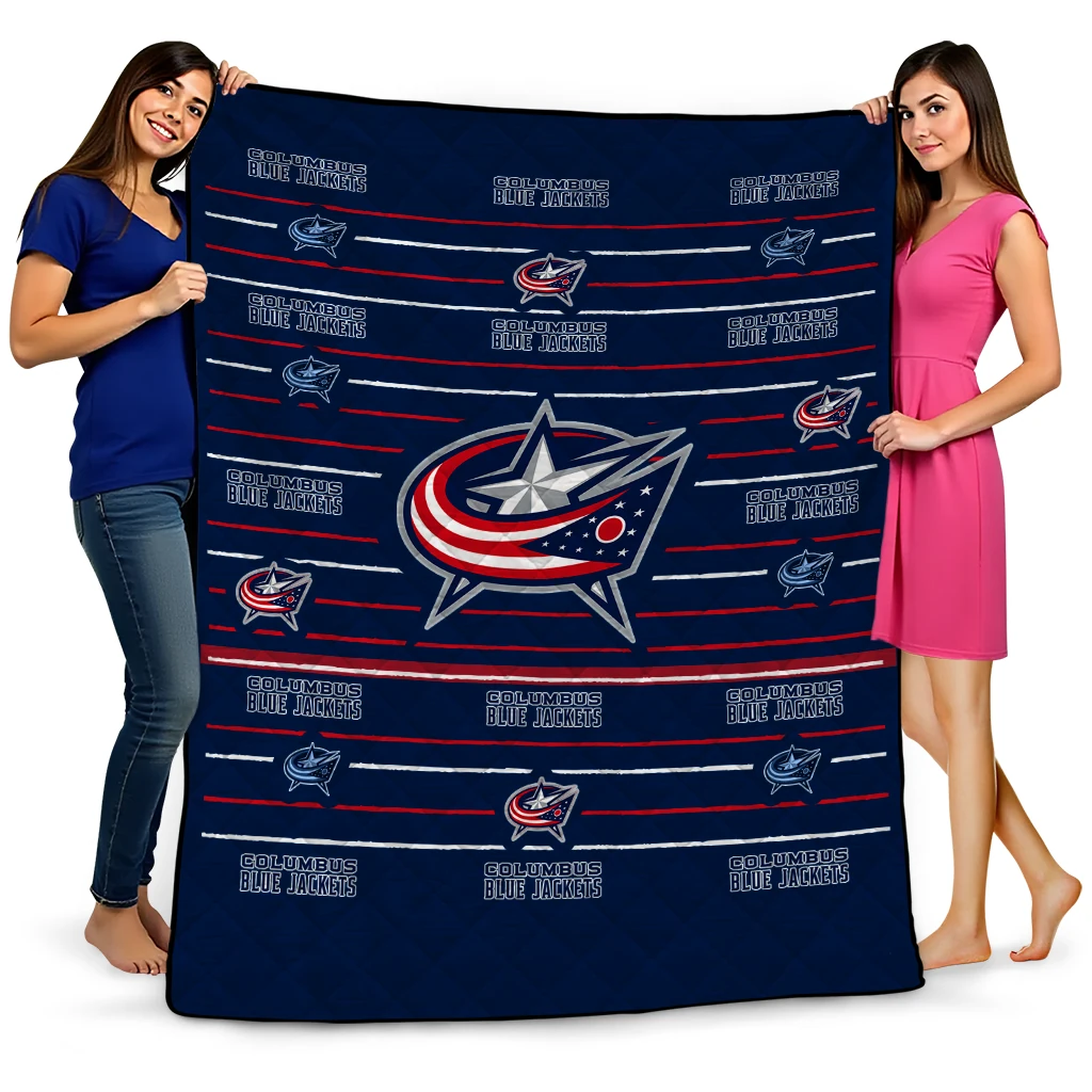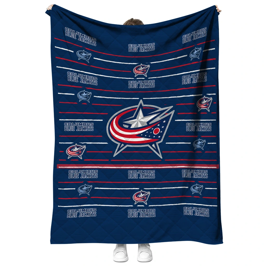 Wrap yourself in warmth and pride with the Columbus Blue Jackets Handdrawn Stripes Navy Blue Quilt Blanket from the Columbus Blue Jackets Blankets collection at Yes That Blanket. Made from 100% premium quilting-weight polyester blended with a touch of microfiber, this quilt offers a smooth, soft finish you’ll love. Choose between two quilting styles—Stipple or Diagonal—and enjoy the comfort of a cotton-filled layer inside that adds extra coziness for every season. The border is available in classic black or white, giving your design a clean, timeless edge.
