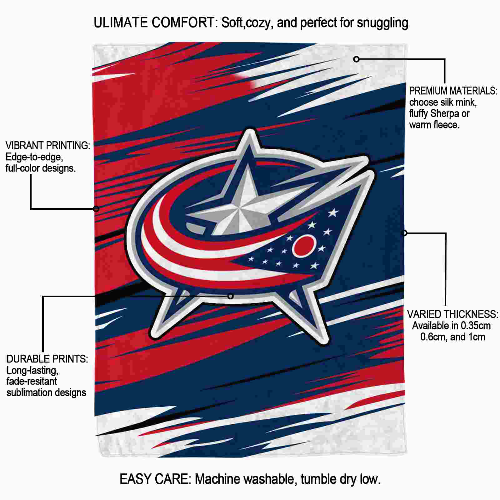 Without a doubt, the Columbus Blue Jackets Paint Streaks Navy Blue White Blanket from Columbus Blue Jackets Blankets collection is offering true fans a chance to showcase passion in a cool way. Personalize it with your favorite team's logo or a meaningful name to make it uniquely yours. Isn't that great? The full-color print ensures vibrant, edge-to-edge designs, bringing your sports enthusiasm to life!