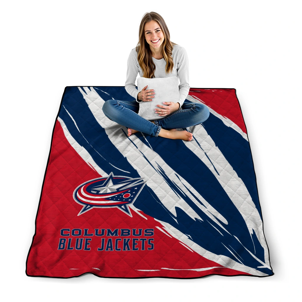 Wrap yourself in warmth and pride with the Columbus Blue Jackets Stroke Art Navy Blue White Quilt Blanket from the Columbus Blue Jackets Blankets collection at Yes That Blanket. Made from 100% premium quilting-weight polyester blended with a touch of microfiber, this quilt offers a smooth, soft finish you’ll love. Choose between two quilting styles—Stipple or Diagonal—and enjoy the comfort of a cotton-filled layer inside that adds extra coziness for every season. The border is available in classic black or white, giving your design a clean, timeless edge.