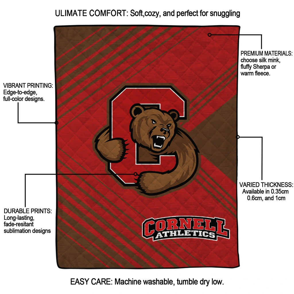 Wrap yourself in warmth and pride with the Cornell Big Red Arrow Layers Red Quilt Blanket from the Cornell Big Red Blankets collection at Yes That Blanket. Made from 100% premium quilting-weight polyester blended with a touch of microfiber, this quilt offers a smooth, soft finish you’ll love. Choose between two quilting styles—Stipple or Diagonal—and enjoy the comfort of a cotton-filled layer inside that adds extra coziness for every season. The border is available in classic black or white, giving your design a clean, timeless edge.