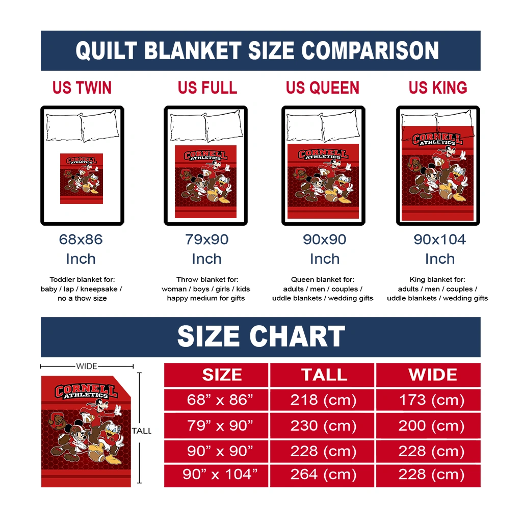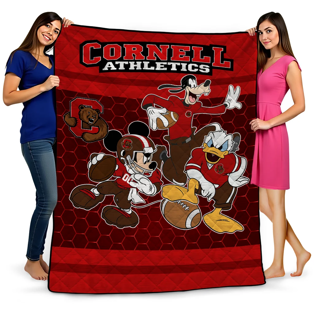 Wrap yourself in warmth and pride with the Cornell Big Red Disney Football Red Quilt Blanket from the Cornell Big Red Blankets collection at Yes That Blanket. Made from 100% premium quilting-weight polyester blended with a touch of microfiber, this quilt offers a smooth, soft finish you’ll love. Choose between two quilting styles—Stipple or Diagonal—and enjoy the comfort of a cotton-filled layer inside that adds extra coziness for every season. The border is available in classic black or white, giving your design a clean, timeless edge.