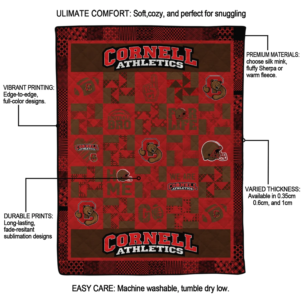 The Cornell Big Red Helmet Heart Red Quilt Blanket is more than a blanket—it’s everyday comfort, thoughtfully made. Crafted from premium quilting fabric with a soft microfiber touch, it offers a smooth hand-feel and lasting coziness. Layered quilting with a cotton-filled core provides adaptable warmth across seasons while maintaining a clean, tailored look on your bed or sofa.