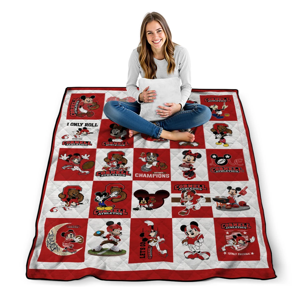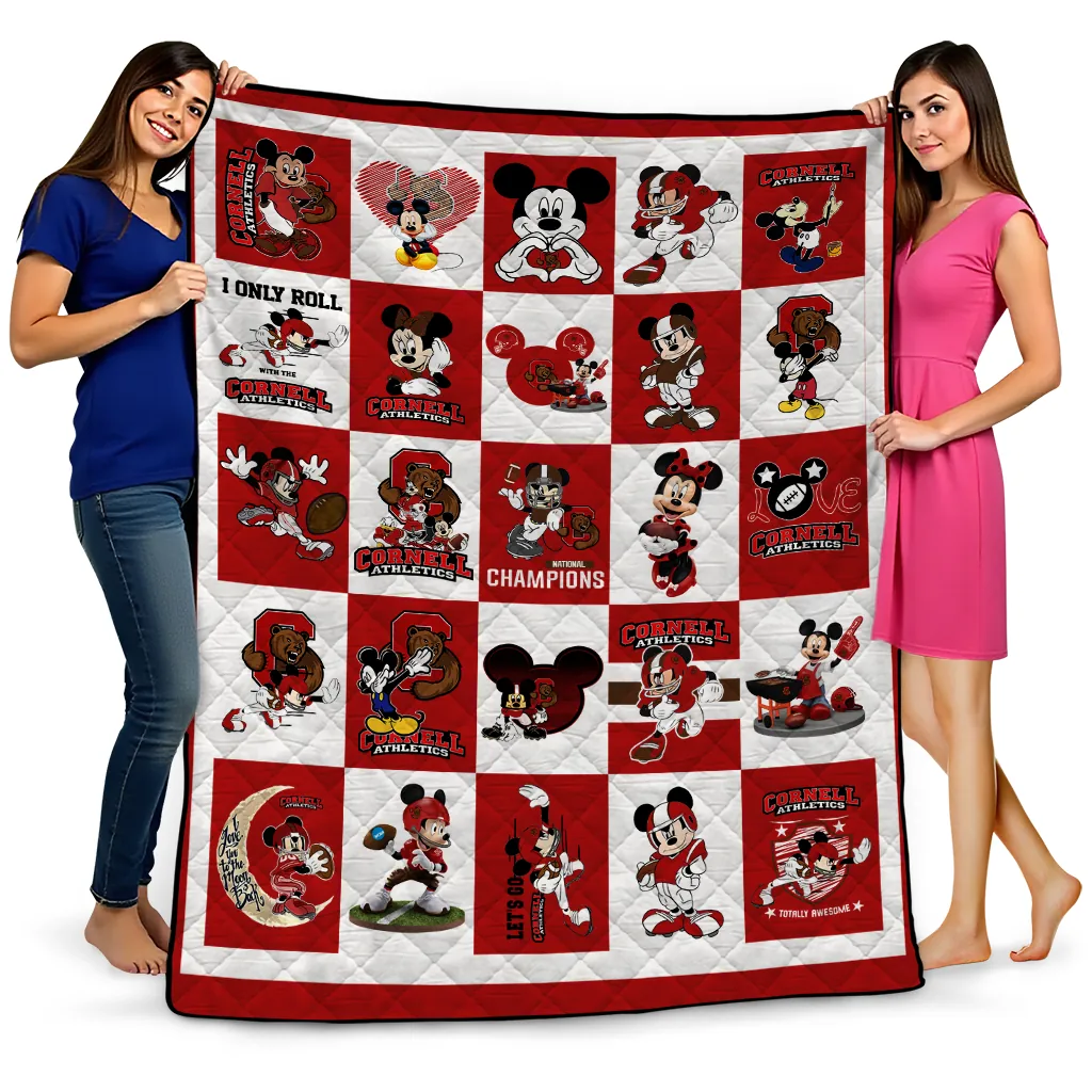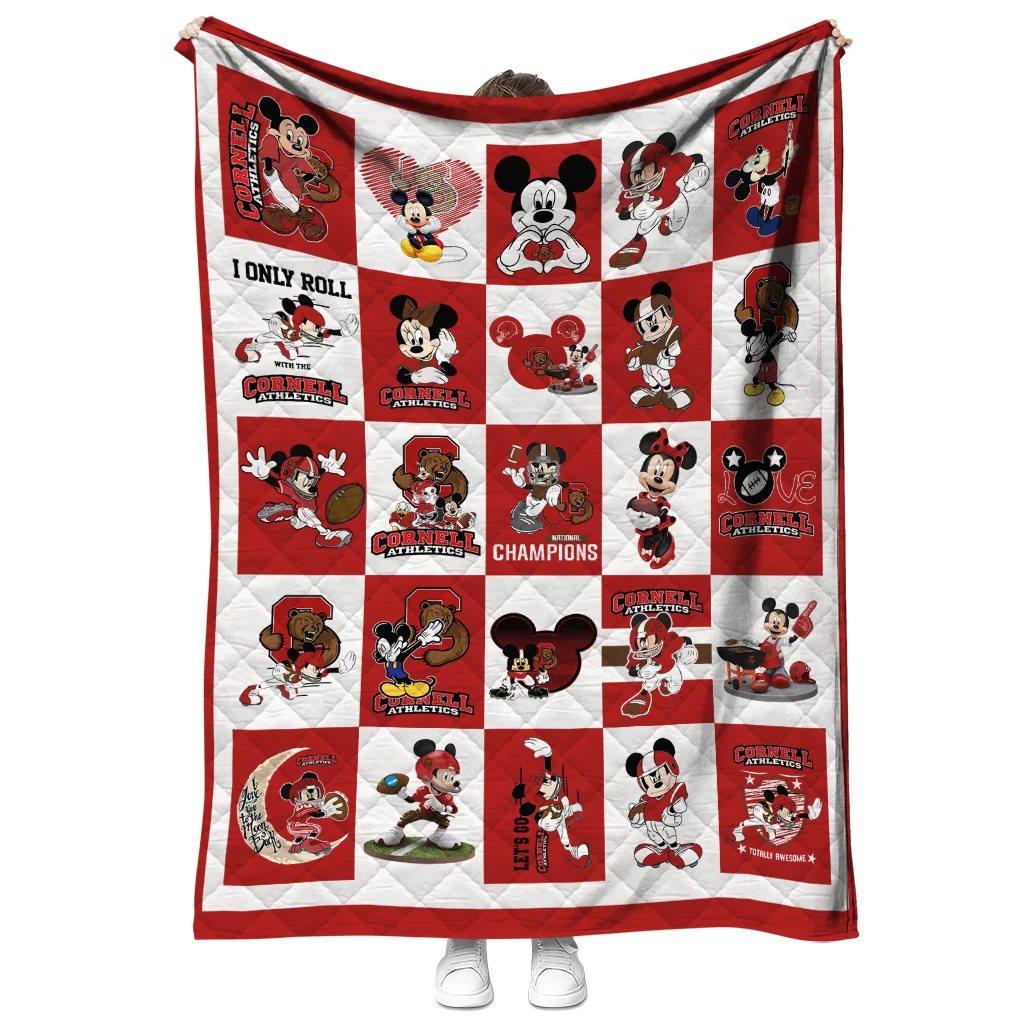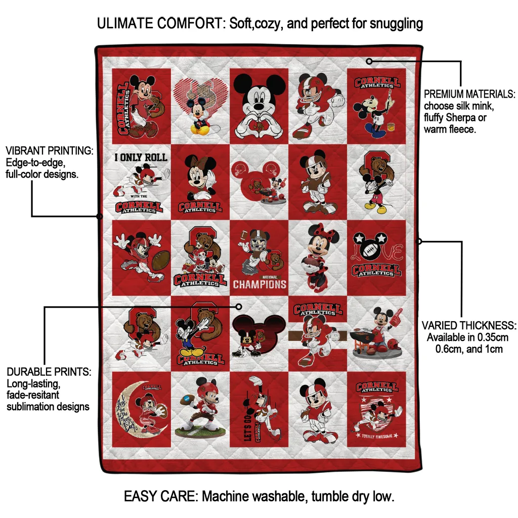 Wrap yourself in warmth and pride with the Cornell Big Red Mickey Mouse Motif Red White Quilt Blanket from the Cornell Big Red Blankets collection at Yes That Blanket. Made from 100% premium quilting-weight polyester blended with a touch of microfiber, this quilt offers a smooth, soft finish you’ll love. Choose between two quilting styles—Stipple or Diagonal—and enjoy the comfort of a cotton-filled layer inside that adds extra coziness for every season. The border is available in classic black or white, giving your design a clean, timeless edge.