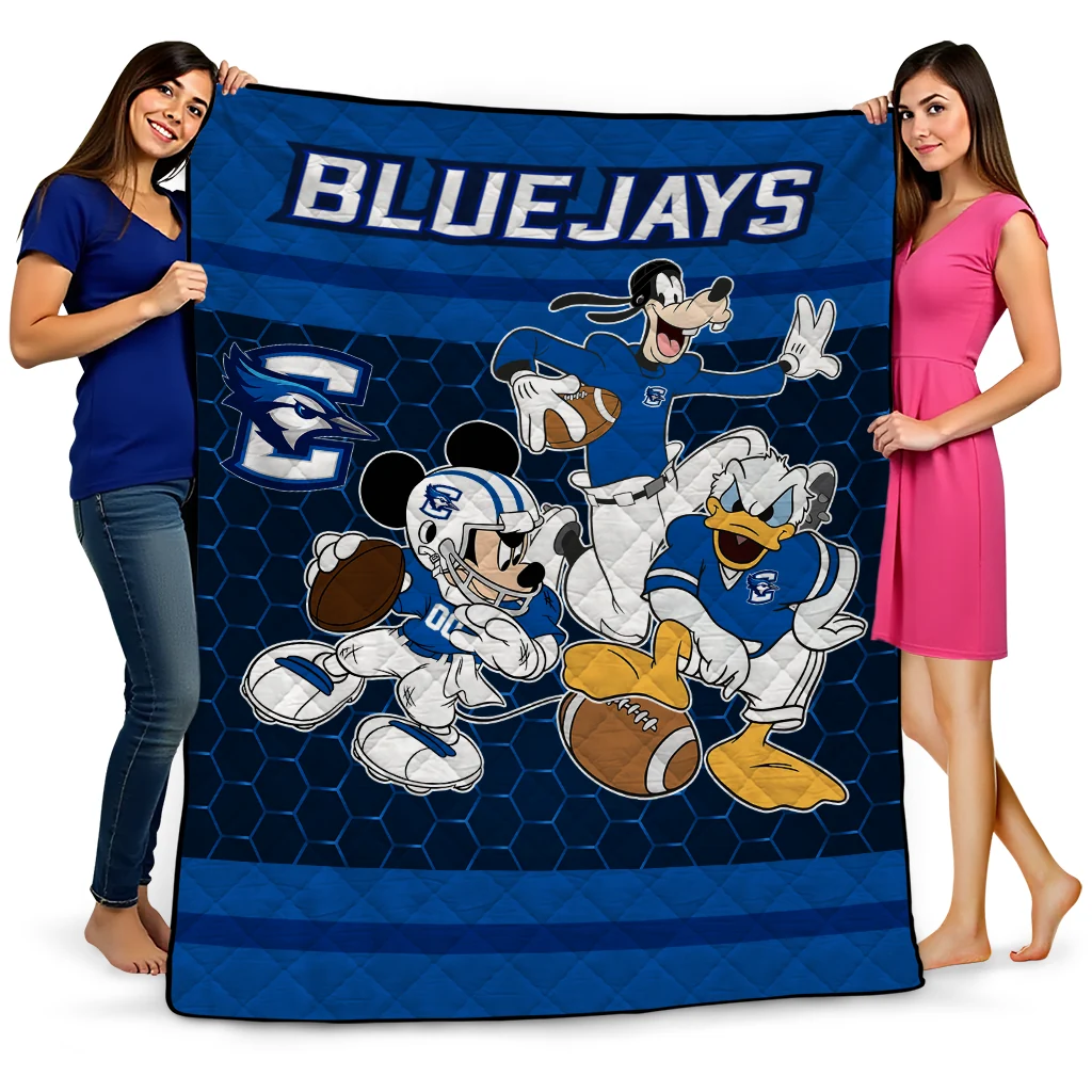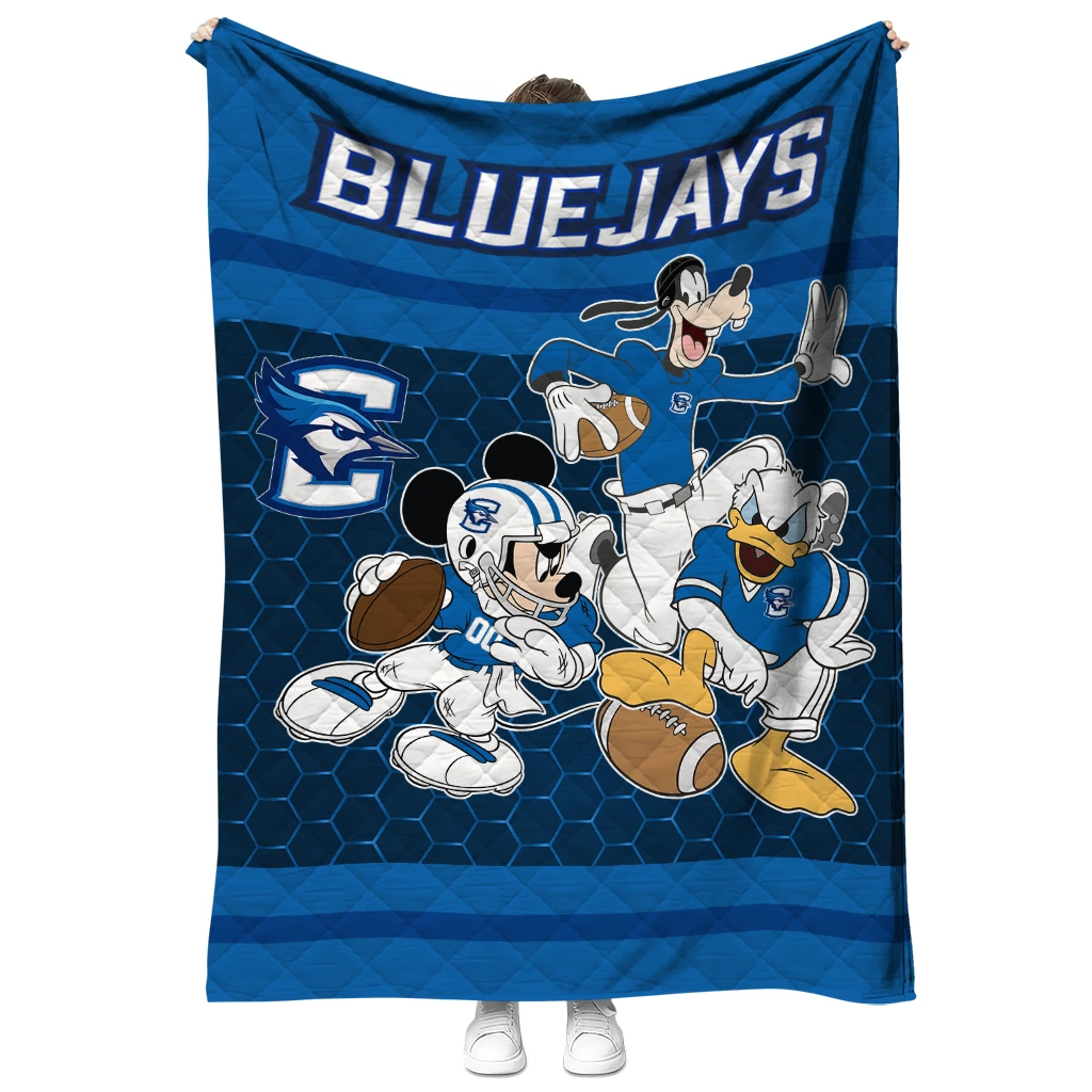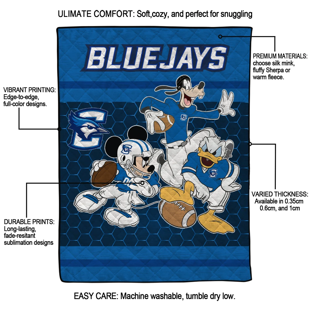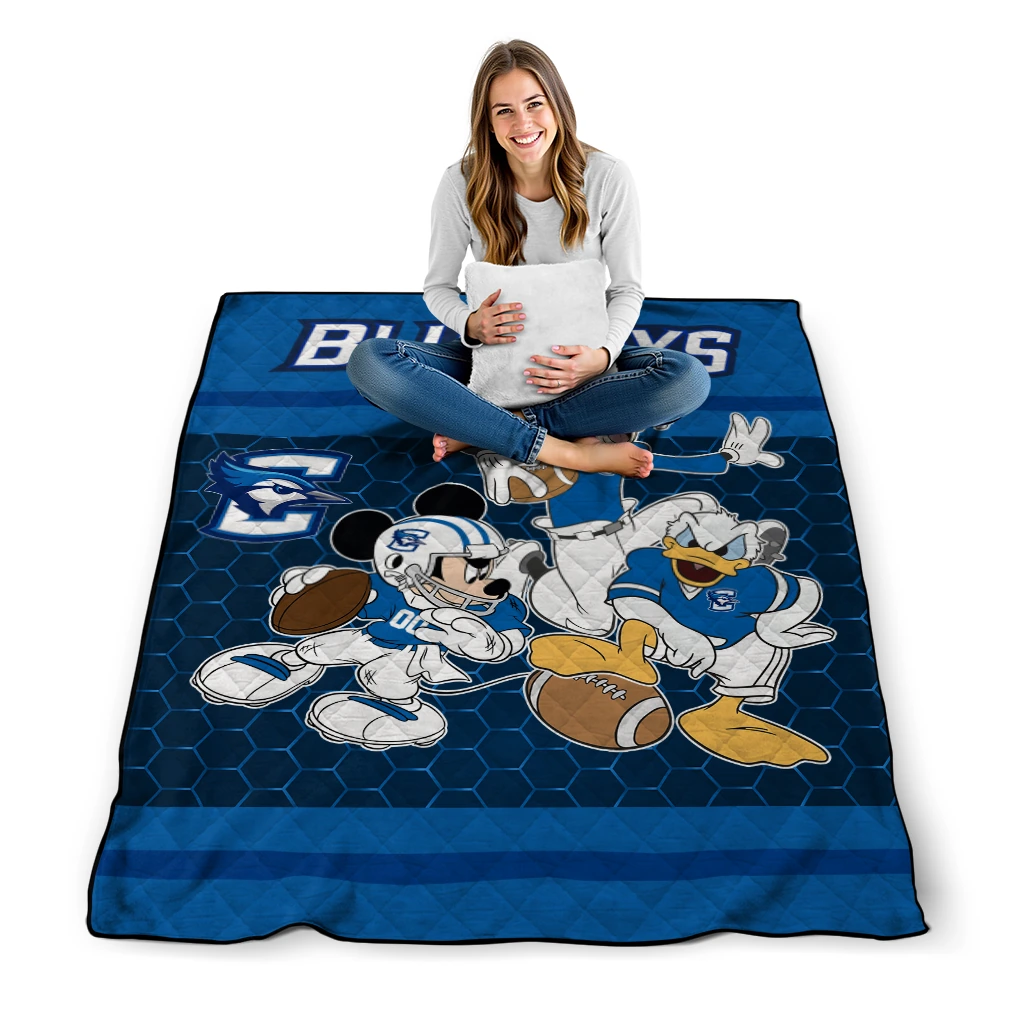 Wrap yourself in warmth and pride with the Creighton Bluejays Disney Football Blue Quilt Blanket from the Creighton Bluejays Blankets collection at Yes That Blanket. Made from 100% premium quilting-weight polyester blended with a touch of microfiber, this quilt offers a smooth, soft finish you’ll love. Choose between two quilting styles—Stipple or Diagonal—and enjoy the comfort of a cotton-filled layer inside that adds extra coziness for every season. The border is available in classic black or white, giving your design a clean, timeless edge.