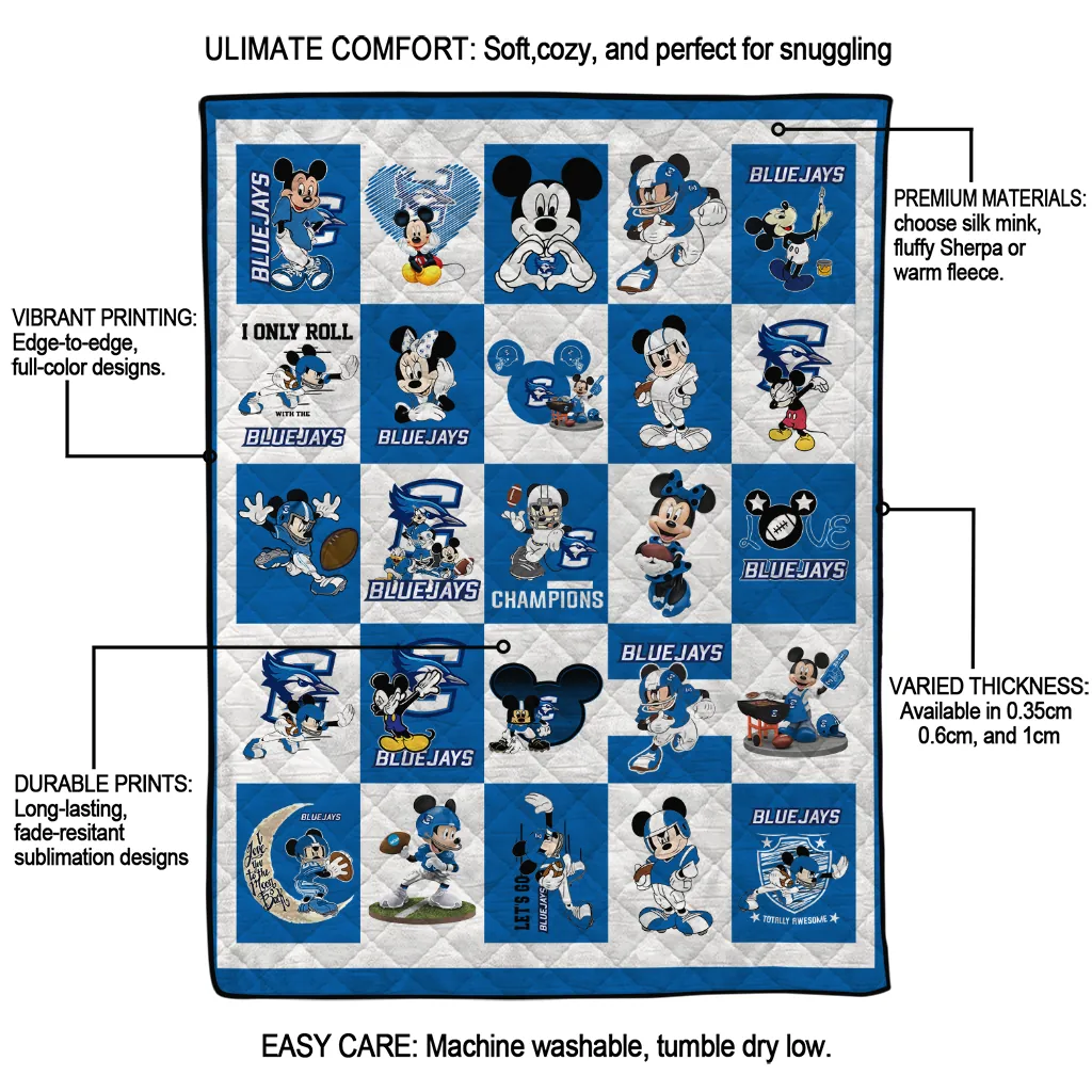 The Creighton Bluejays Mickey Mouse Motif Blue White Quilt Blanket is more than a blanket—it’s everyday comfort, thoughtfully made. Crafted from premium quilting fabric with a soft microfiber touch, it offers a smooth hand-feel and lasting coziness. Layered quilting with a cotton-filled core provides adaptable warmth across seasons while maintaining a clean, tailored look on your bed or sofa.