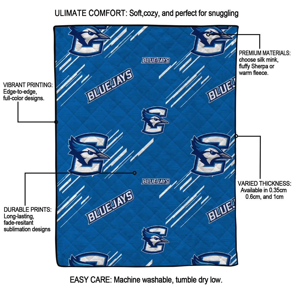 Wrap yourself in warmth and pride with the Creighton Bluejays Sketch Lines Blue Quilt Blanket from the Creighton Bluejays Blankets collection at Yes That Blanket. Made from 100% premium quilting-weight polyester blended with a touch of microfiber, this quilt offers a smooth, soft finish you’ll love. Choose between two quilting styles—Stipple or Diagonal—and enjoy the comfort of a cotton-filled layer inside that adds extra coziness for every season. The border is available in classic black or white, giving your design a clean, timeless edge.