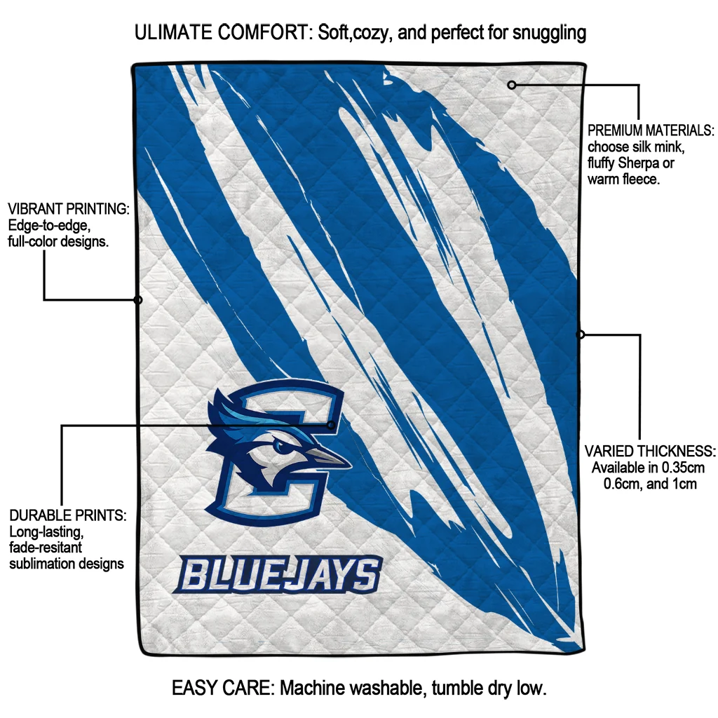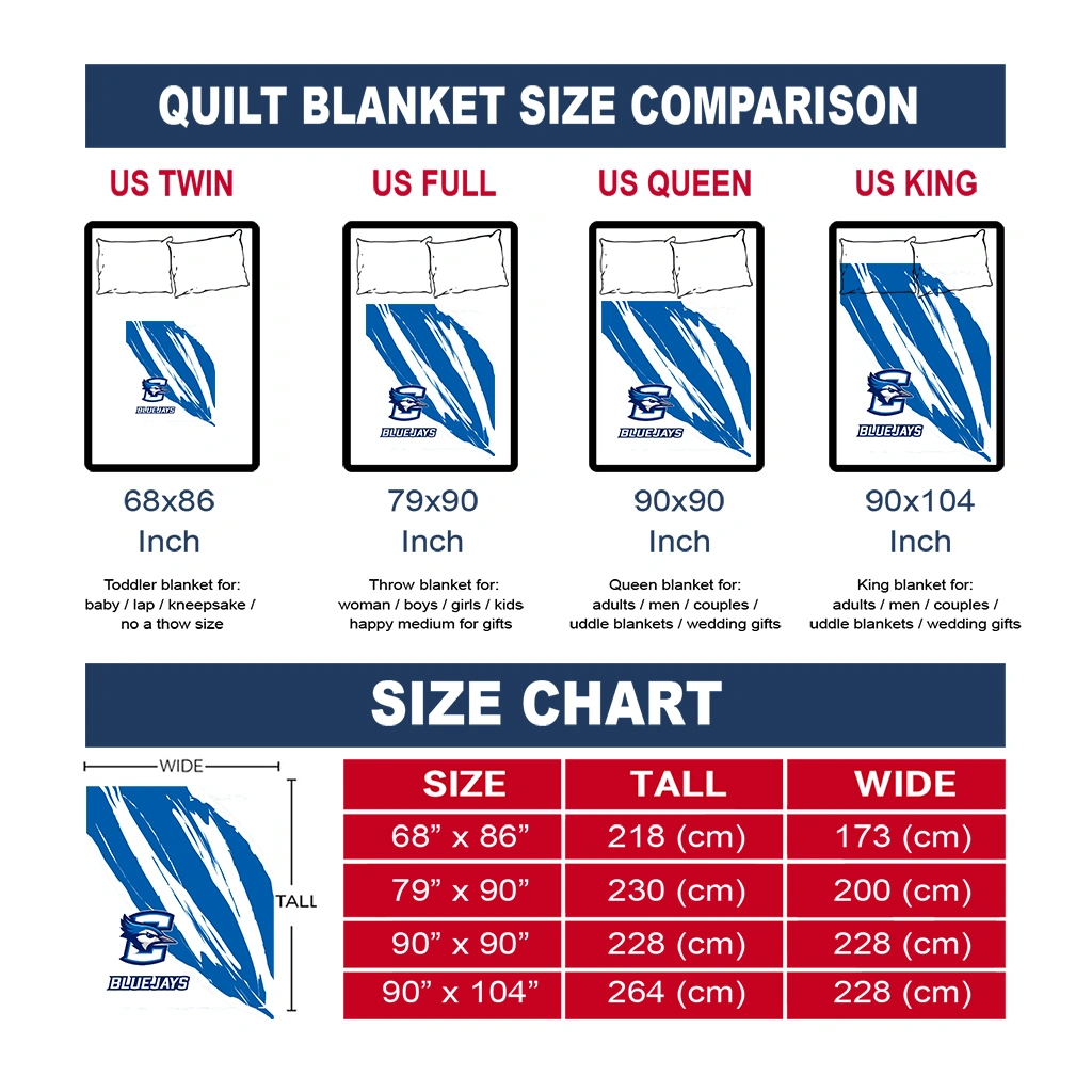 Wrap yourself in warmth and pride with the Creighton Bluejays Stroke Art Blue White Quilt Blanket from the Creighton Bluejays Blankets collection at Yes That Blanket. Made from 100% premium quilting-weight polyester blended with a touch of microfiber, this quilt offers a smooth, soft finish you’ll love. Choose between two quilting styles—Stipple or Diagonal—and enjoy the comfort of a cotton-filled layer inside that adds extra coziness for every season. The border is available in classic black or white, giving your design a clean, timeless edge.