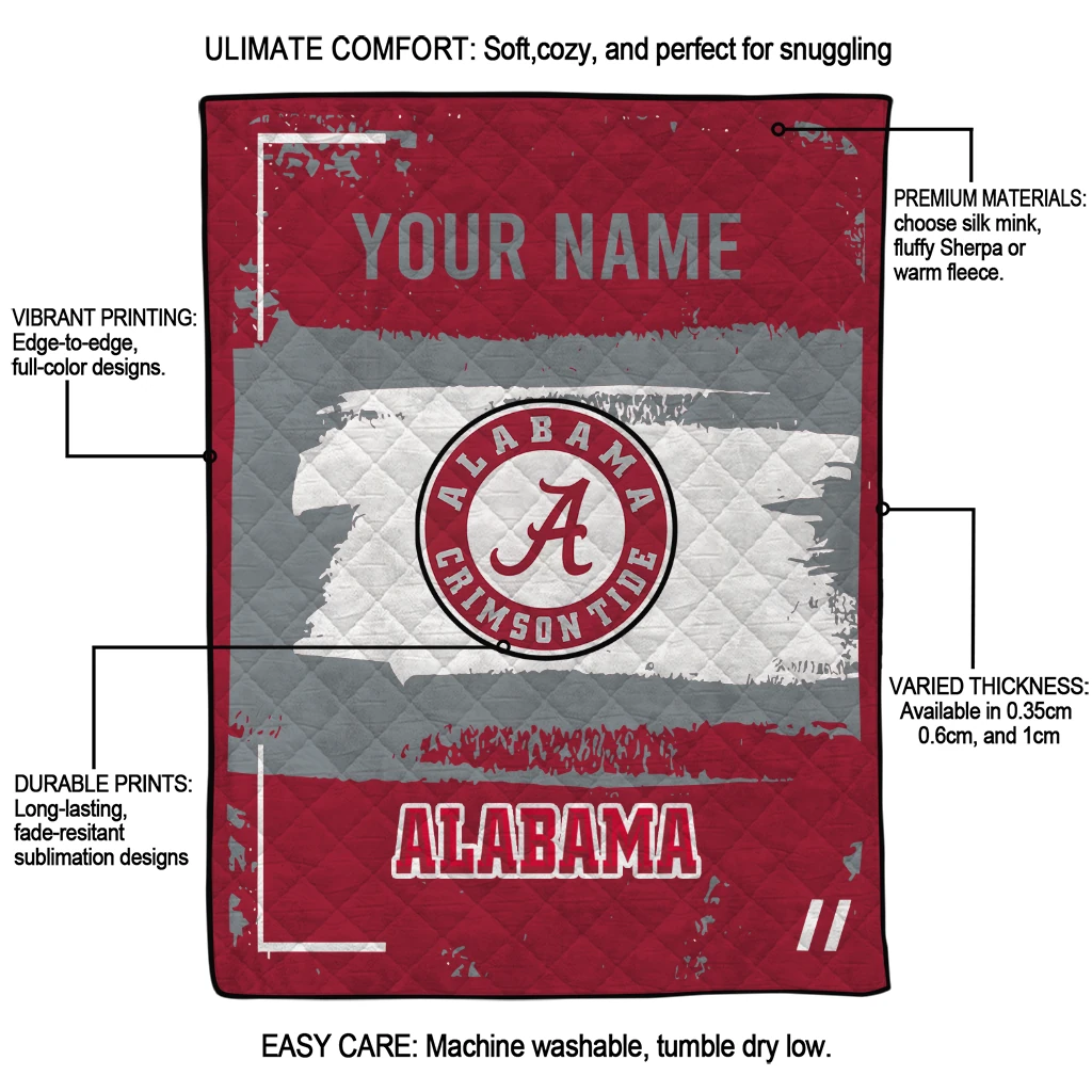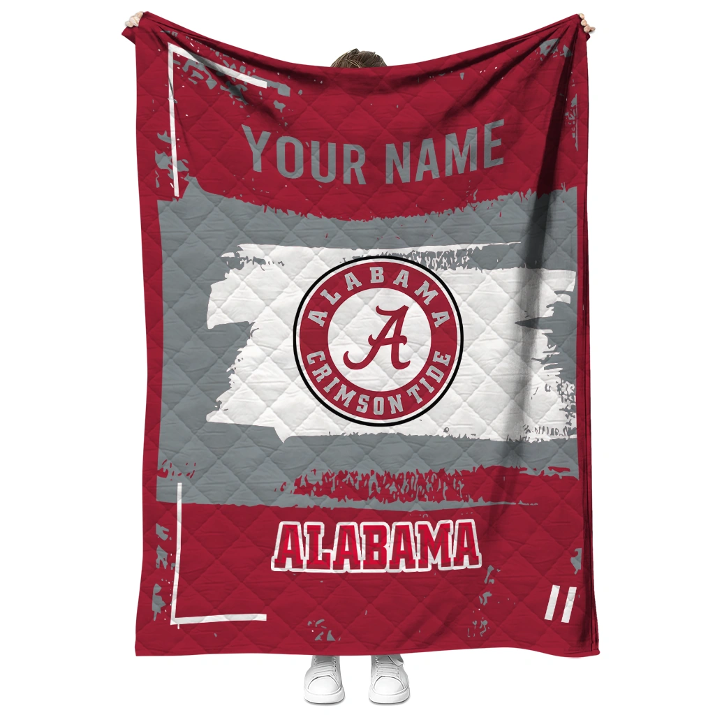 Custom Alabama Crimson Tide Grunge Patch Crimson White Quilt Blanket