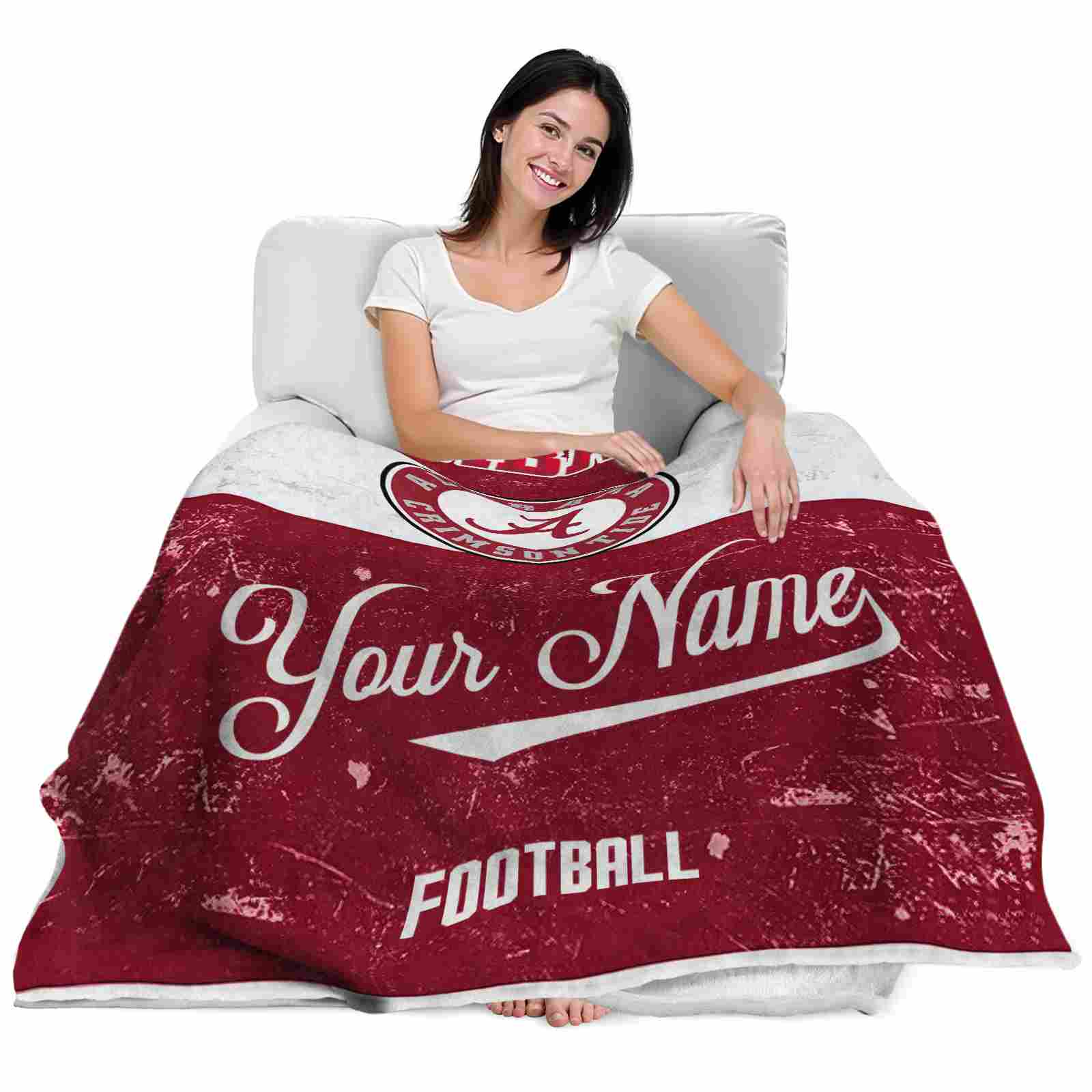 Without a doubt, the Custom Alabama Crimson Tide Grunge Texture Crimson White Blanket from Alabama Crimson Tide Blankets collection is offering true fans a chance to showcase passion in a cool way. Personalize it with your favorite team’s logo or a meaningful name to make it uniquely yours. Isn’t that great? The full-color print ensures vibrant, edge-to-edge designs, bringing your sports enthusiasm to life!