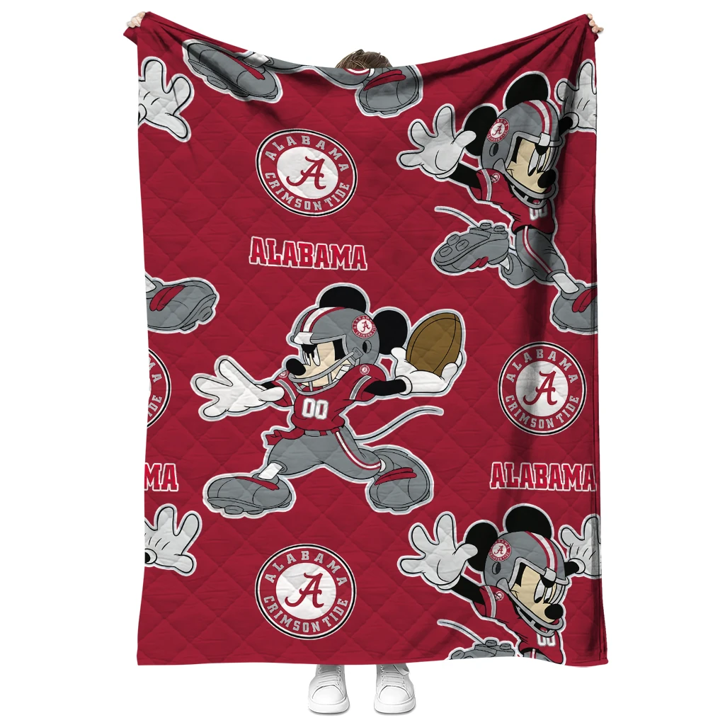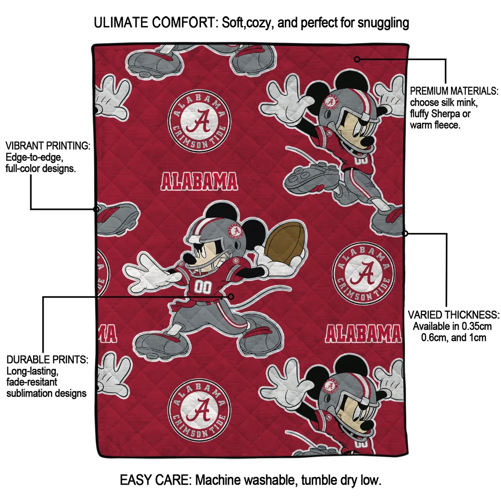 The Custom Alabama Crimson Tide Mickey Football Crimson Quilt Blanket is more than a blanket—it’s everyday comfort, thoughtfully made. Crafted from premium quilting fabric with a soft microfiber touch, it offers a smooth hand-feel and lasting coziness. Layered quilting with a cotton-filled core provides adaptable warmth across seasons while maintaining a clean, tailored look on your bed or sofa.