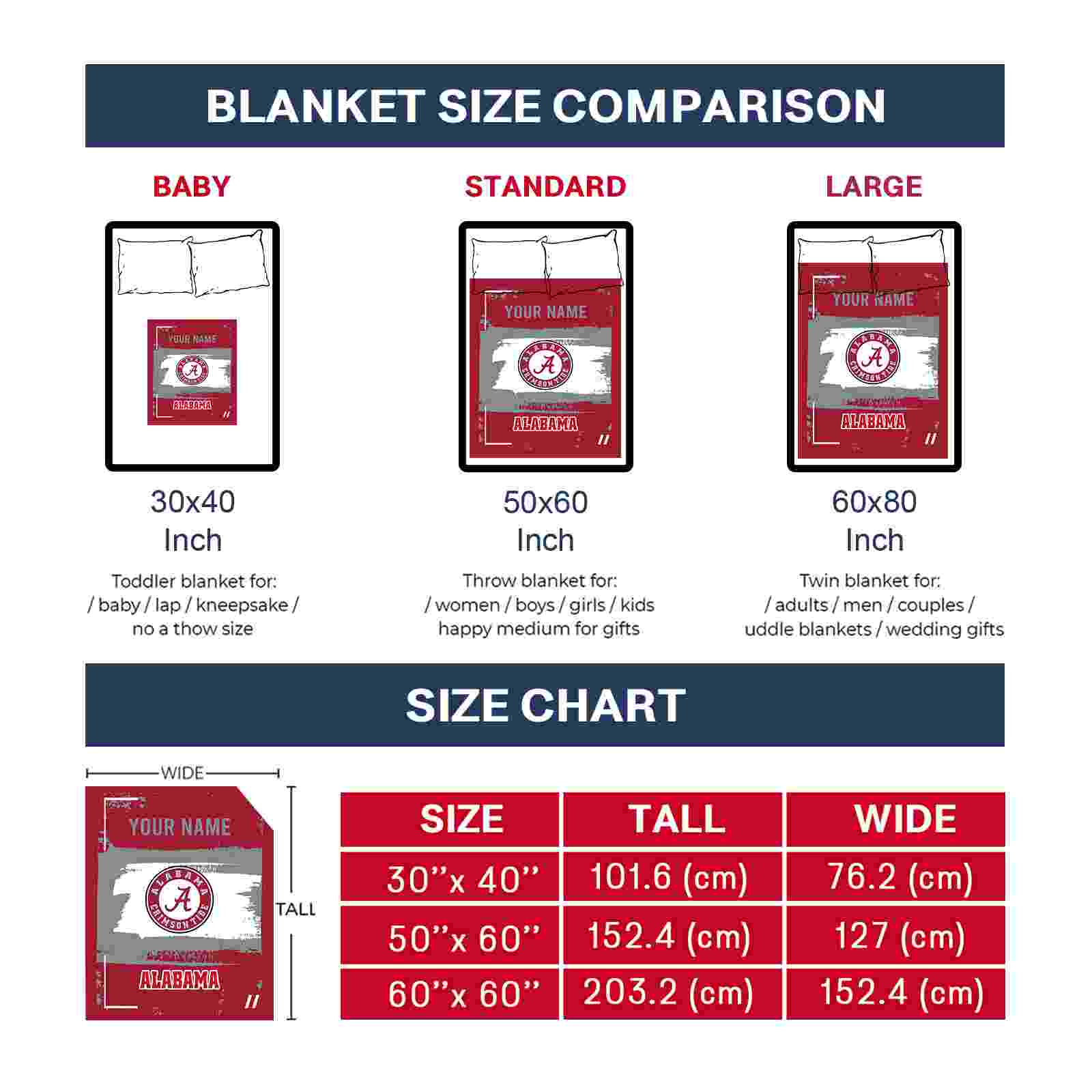 Without a doubt, the Custom Alabama Crimson Tide Paint Strokes Crimson White Blanket from Alabama Crimson Tide Blankets collection is offering true fans a chance to showcase passion in a cool way. Personalize it with your favorite team’s logo or a meaningful name to make it uniquely yours. Isn’t that great? The full-color print ensures vibrant, edge-to-edge designs, bringing your sports enthusiasm to life!
