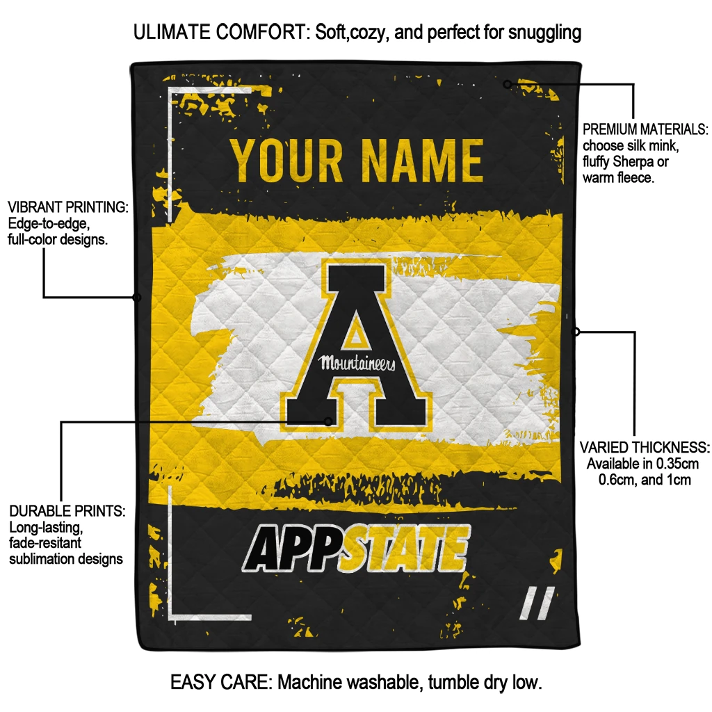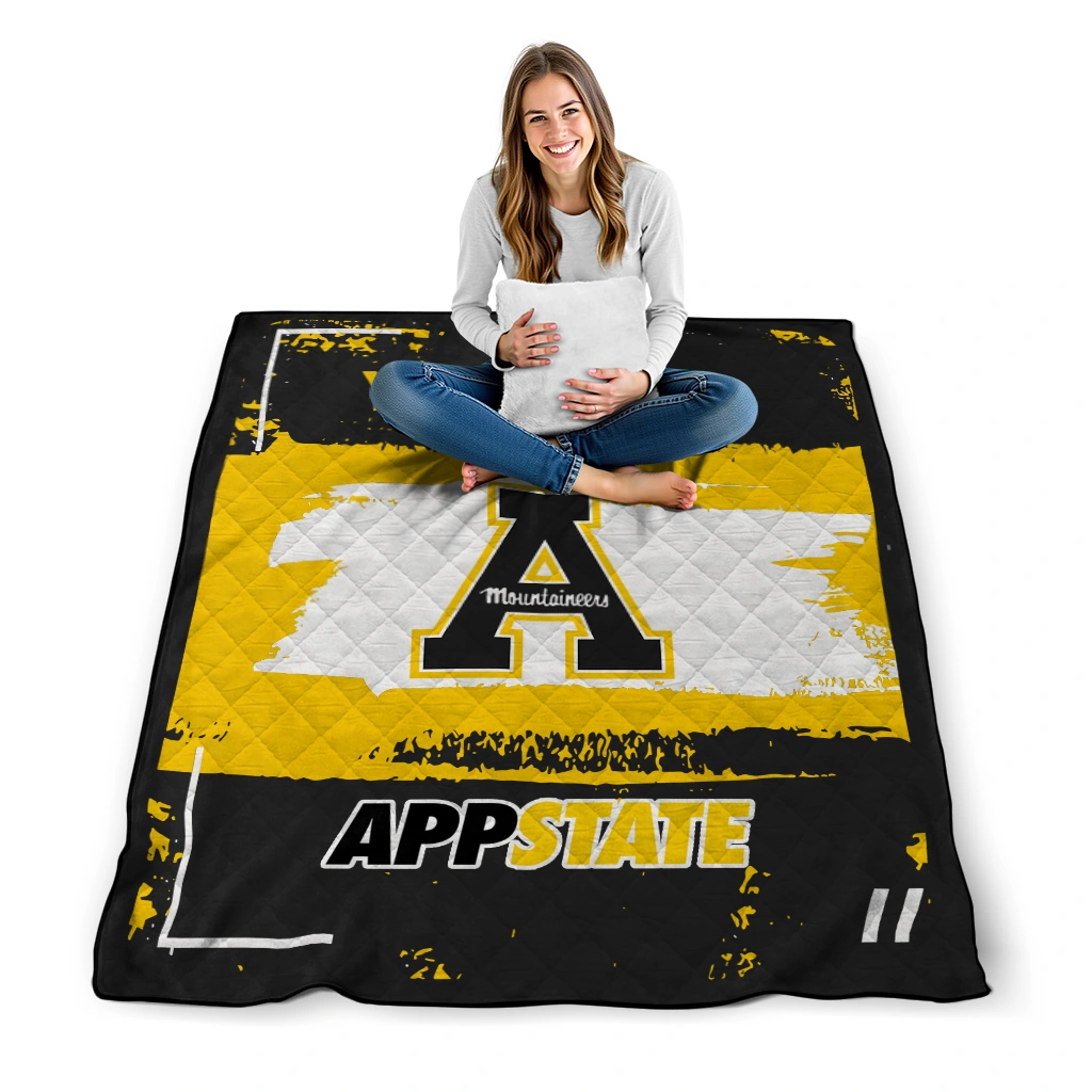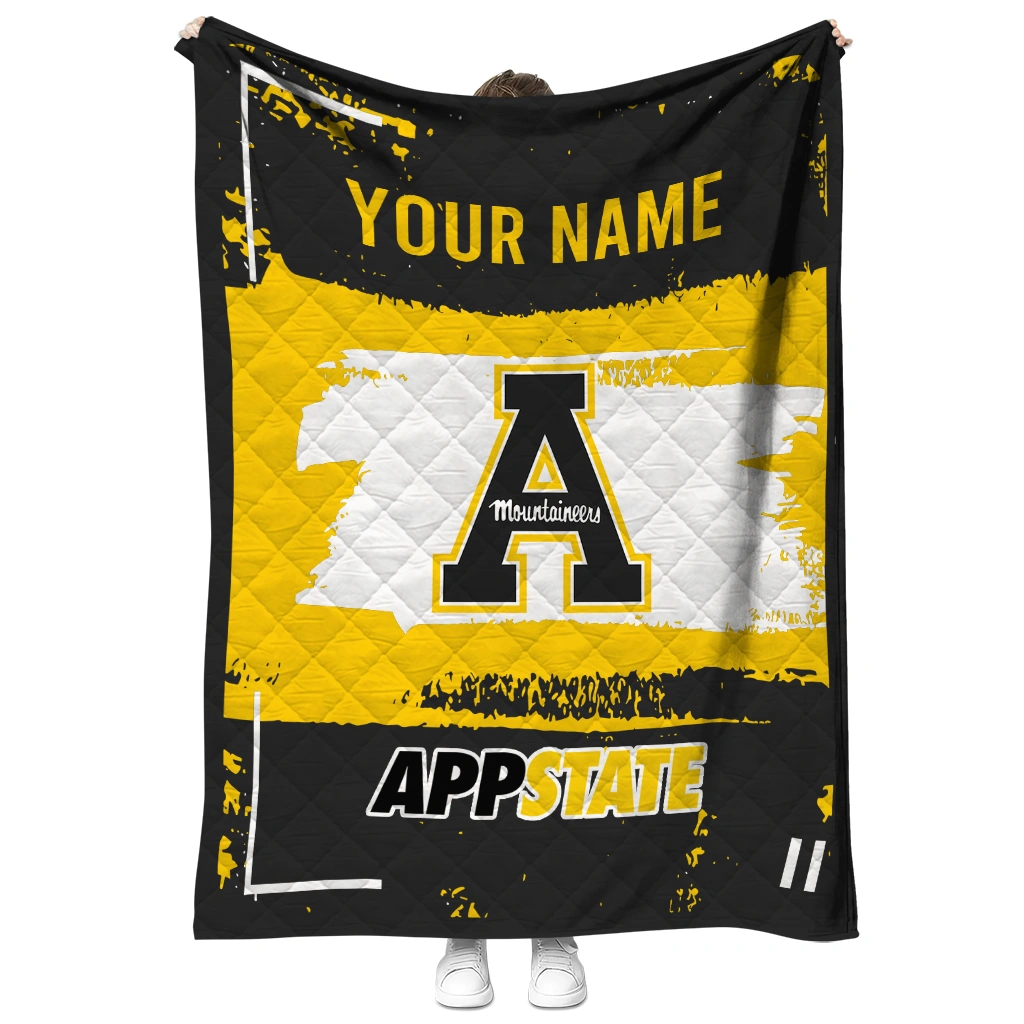 Custom Appalachian State Mountaineers Grunge Patch Black White Quilt Blanket