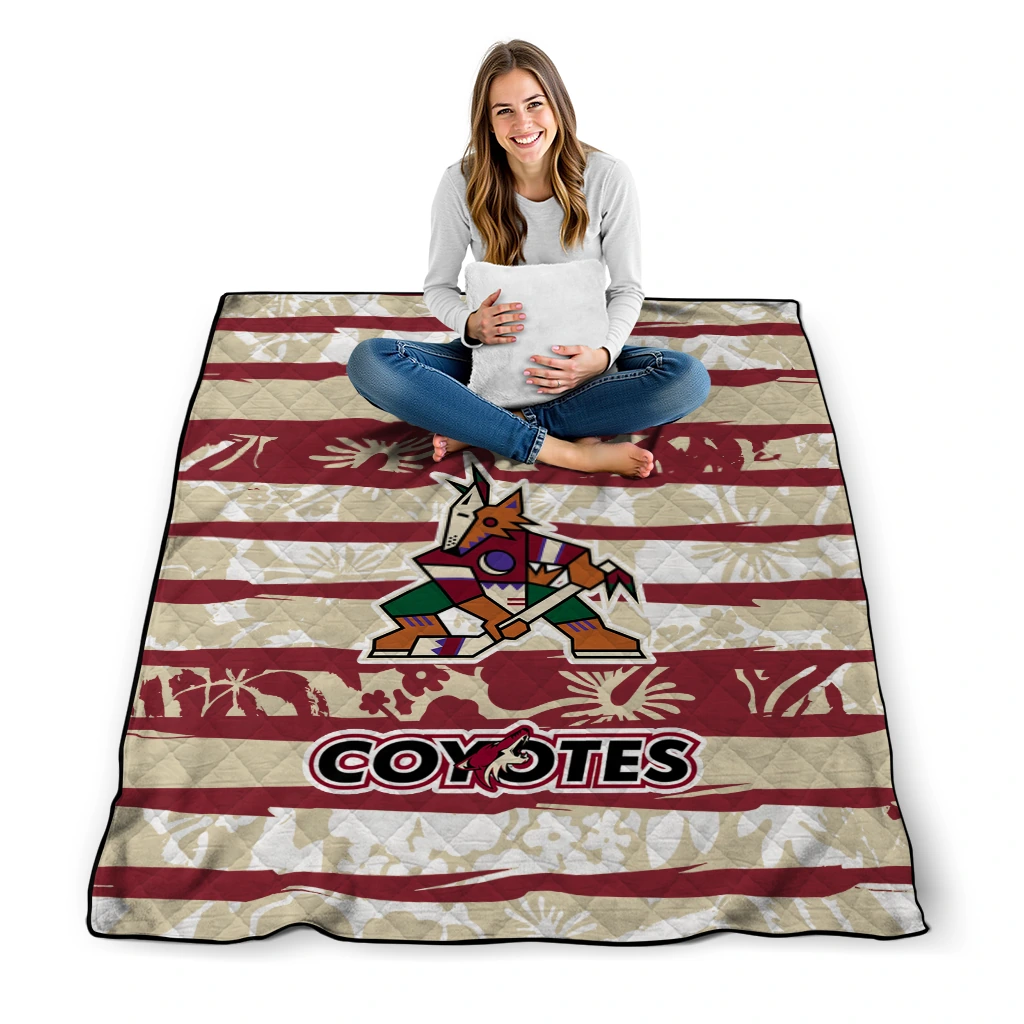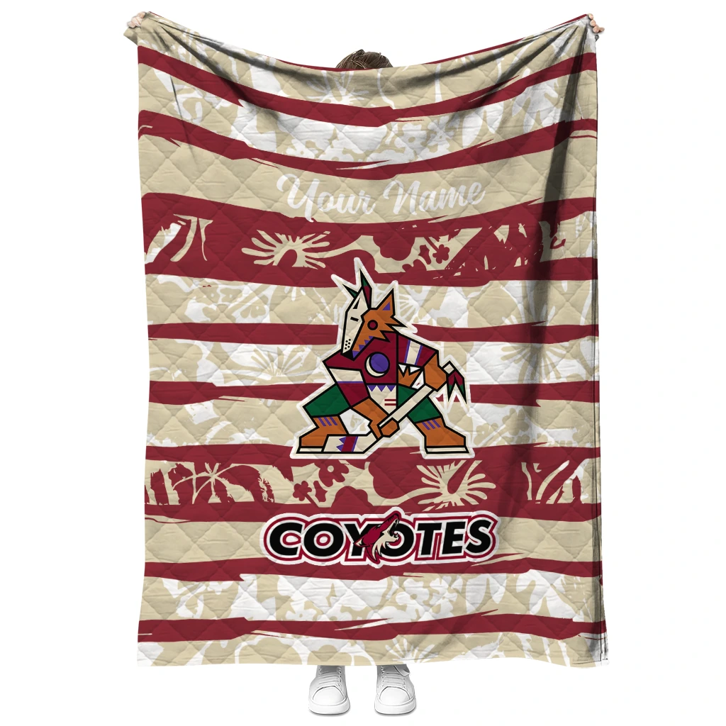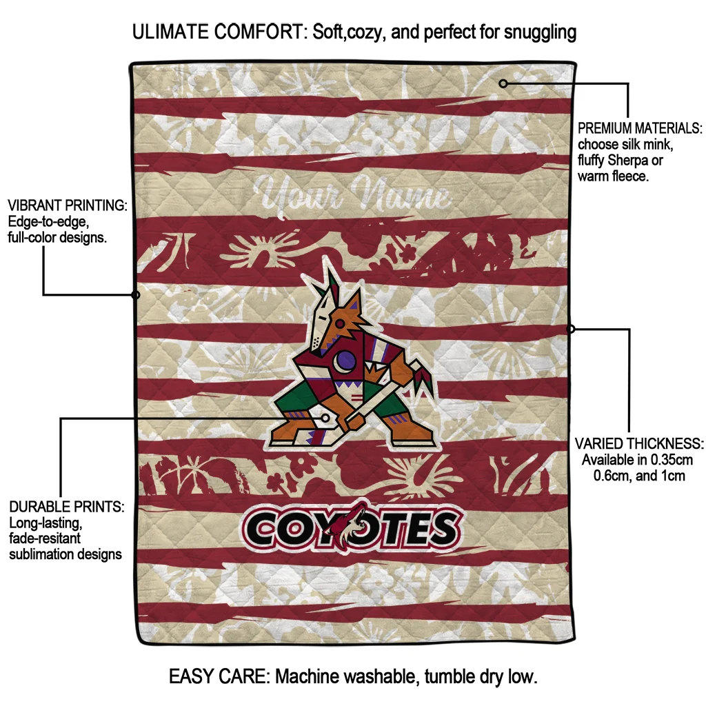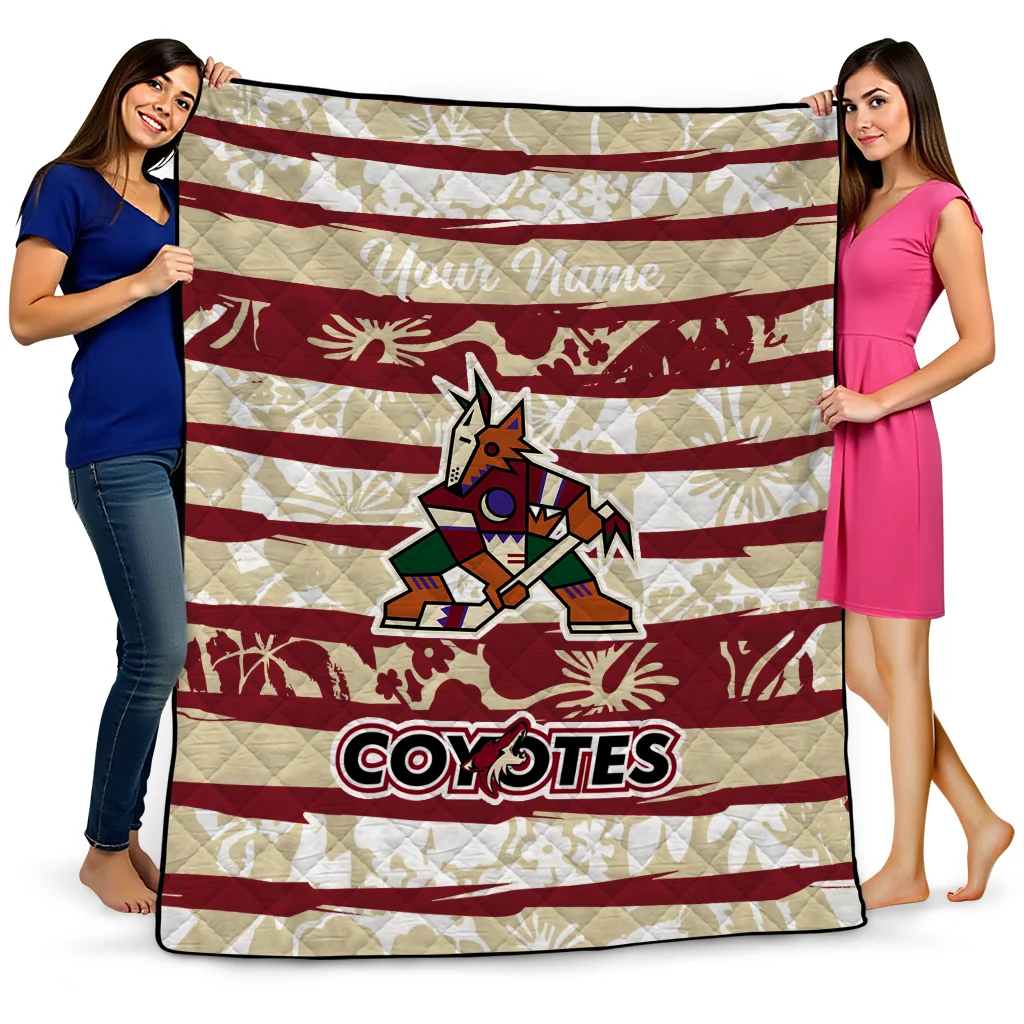 Custom Arizona Coyotes Layered Florals Red White Quilt Blanket