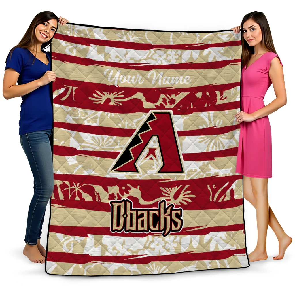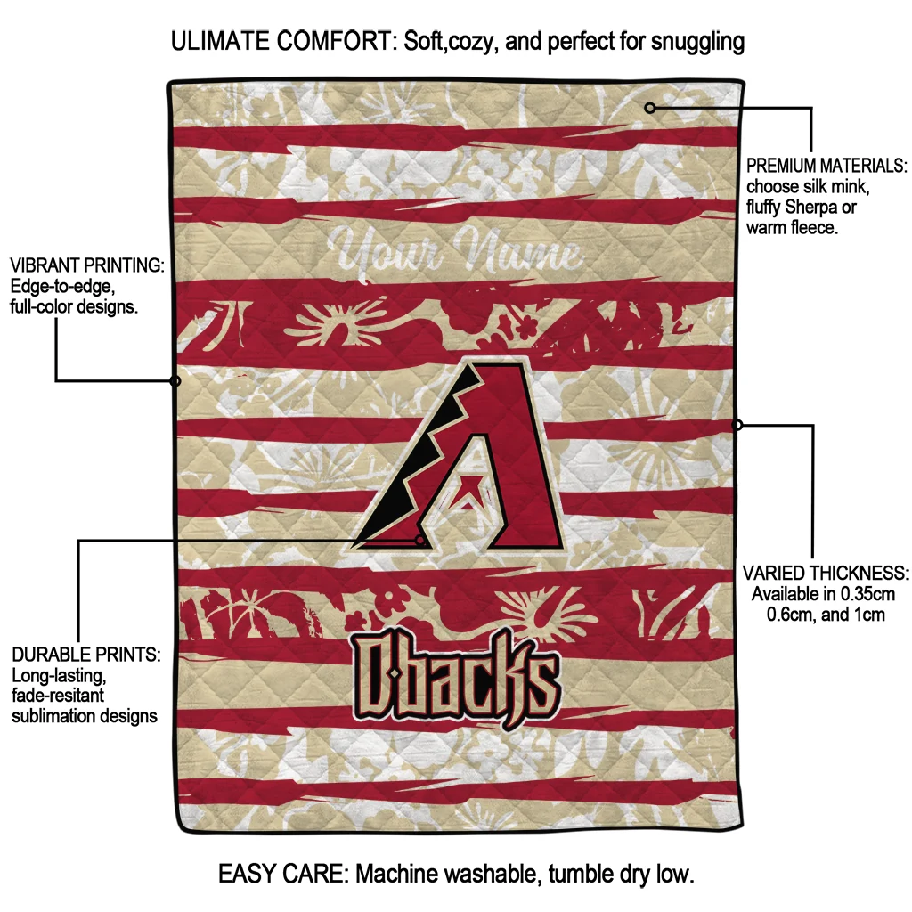 Wrap yourself in warmth and pride with the Custom Arizona Diamondbacks Layered Florals Red White Quilt Blanket from the Arizona Diamondbacks Blankets collection at Yes That Blanket. Made from 100% premium quilting-weight polyester blended with a touch of microfiber, this quilt offers a smooth, soft finish you’ll love. Choose between two quilting styles—Stipple or Diagonal—and enjoy the comfort of a cotton-filled layer inside that adds extra coziness for every season. The border is available in classic black or white, giving your design a clean, timeless edge.
