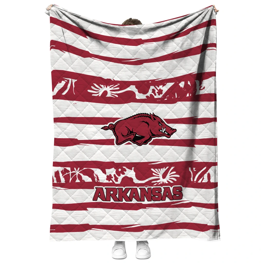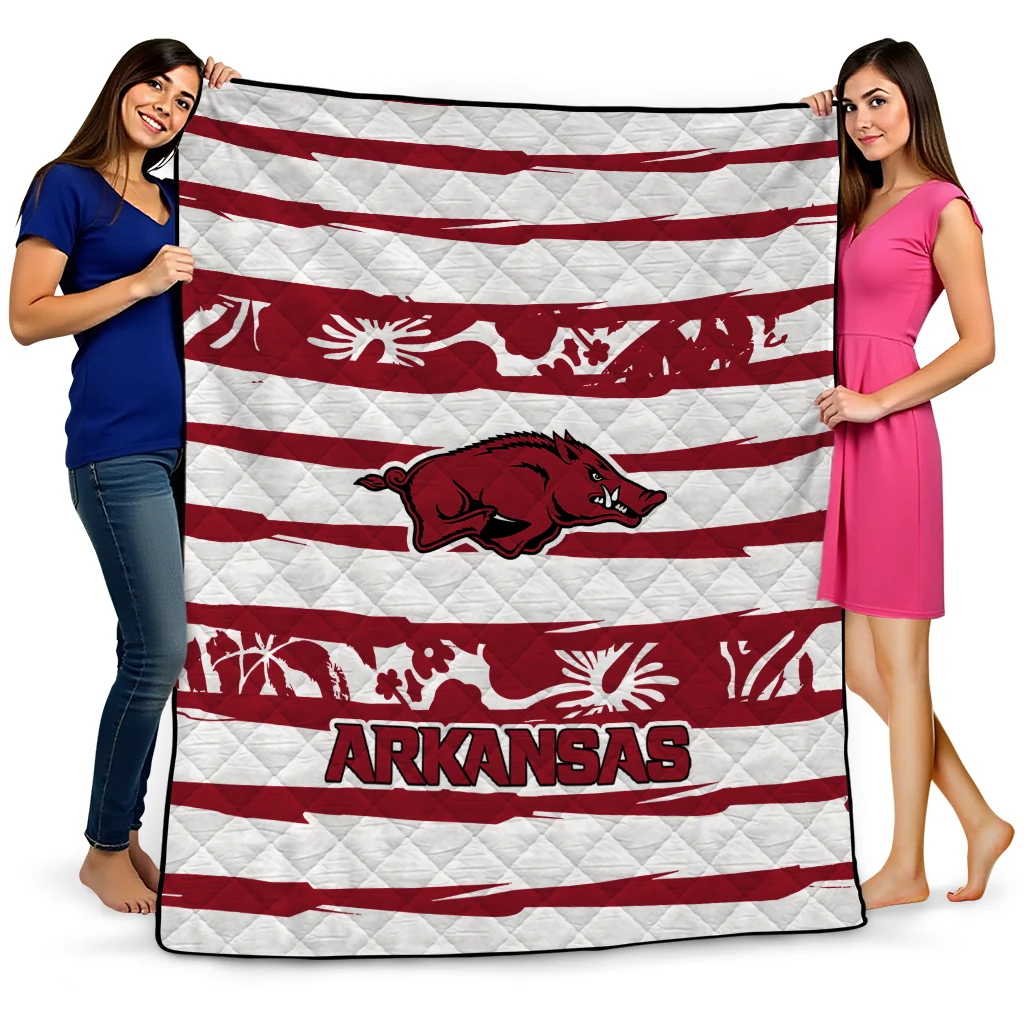 Custom Arkansas Razorbacks Layered Florals Red White Quilt Blanket